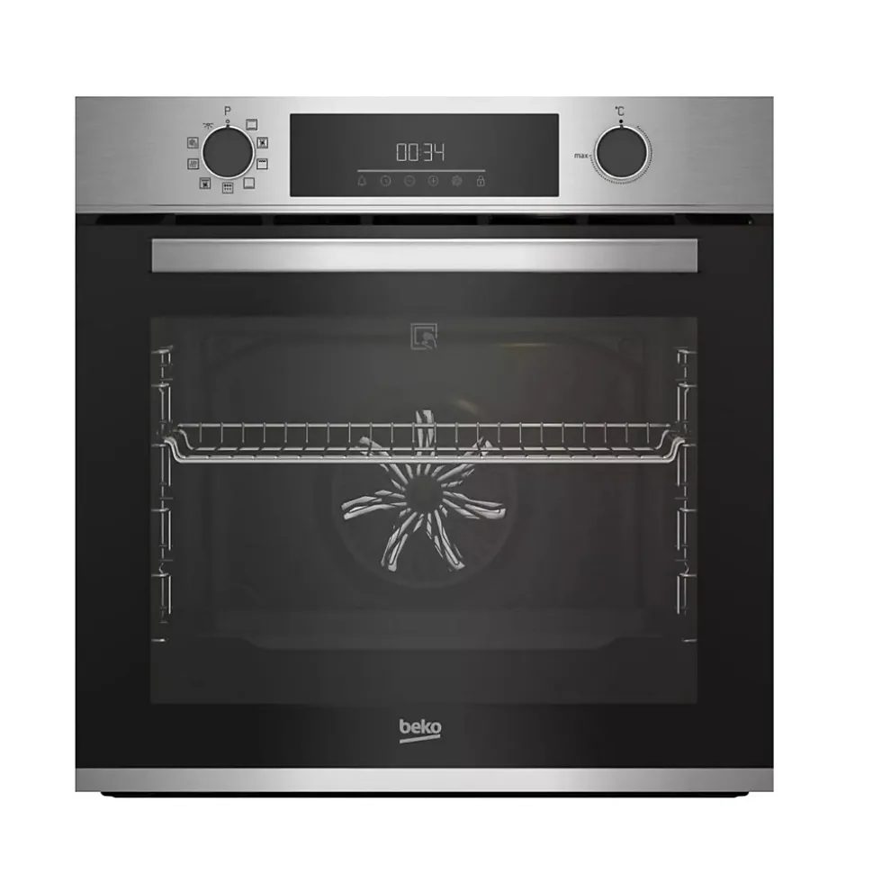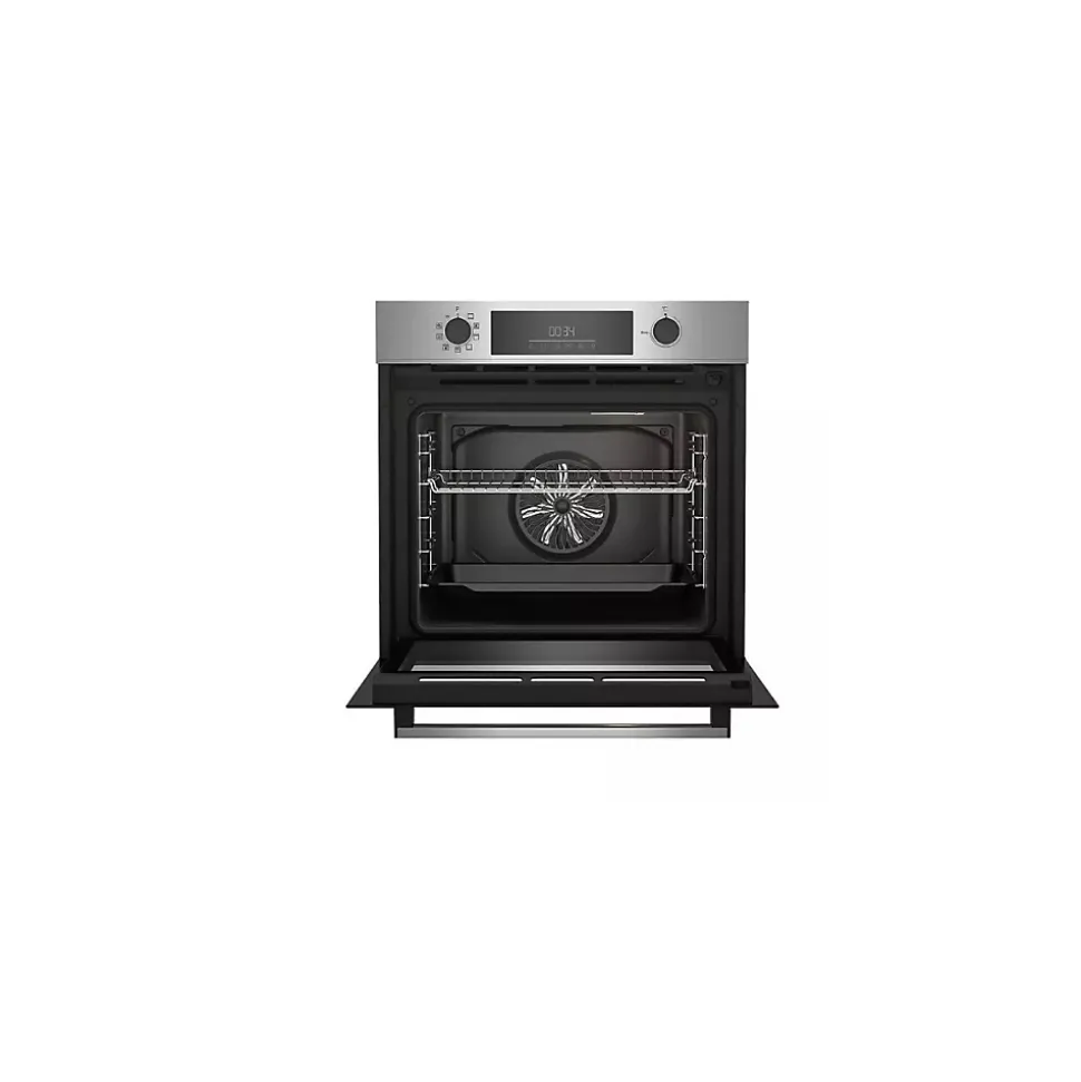 Four intégrable multifonction 72l 60cm a pyrolyse inox Beko – Four intégrable multifonction b300 BBIE12300XMP de Beko.Facilite votre quotidien !La nouvelle cavité est extra lisse pour faciliter le nettoyage et son éclairage, sur la voûte évite d’être ébloui. Le gril est plus large et plus puissant pour dorer parfaitement tous vos plats et les accessoires ont été repensés pour faciliter leur enfournement.Pour une cuisson uniforme !Le puissant ventilateur propulse dans toute la cavité, l’air chauffé par les résistances de voûte et sole, pour un brassage optimal et un résultat de cuisson uniforme.Evitez tout risque de brûlure, même en pyrolyse :Grâce à ses quatre vitres, la porte froide reste à faible température, même en mode pyrolyse lorsque le four atteint 480°C. Idéale lorsque vous avez des enfants en bas âge. – Type de produit : Four.Type de four : Multifonction – Chaleur brassée.Type de pose : Encastrable.Séries : b300.Type de commande : Contrôle mécanique.Type de commande Contrôle mécanique.Système de nettoyage : Pyrolyse.Classe d’efficacité énergétique : A.Nombre de vitres 4.Cons. convection Naturelle 1 (kWh) : 0.99.Puissance totale électrique : 2600 watts.Cons.énergie (conv. forcée de l’air) (kWh) : 0.81.Tension (V) : 220-240 .Fréquence (Hz) : 50 .Type de prise : Européenne.Câble fourni : Standard.Convection naturelle : Oui.Décongélation : Oui.Porte Froide : Porte froide GIFAM.Maintien au chaud : Oui.Contre-porte : Plein verre (amovible).Gradins amovibles : 5.Éclairage intérieur : 1 éclairage (voûte).Type de poignée : Rectangulaire.Type d’ouverture de la porte : Abattant.Décongélation : Oui.Type de Gril : Electrique.Couleur de l’émail : Noir.Cavité principale – Volume utile (lt) : 72.Lèchefrite standard : 1.Grille standard amovible : 1.Nombre de fonctions : 9