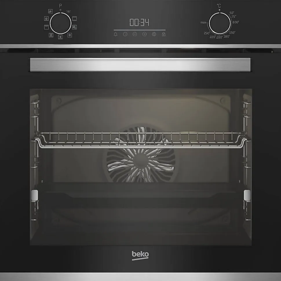 Four intégrable multifonction 72l 60cm catalyse Beko – Four intégrable multifonction catalyse Beko BBIM13301XC doté d’une nouvelle technologie AeroPerfect avec chaleur pulsée. La combinaison des 3 résistances voûte, sole et annulaire avec le puissant ventilateur à 1650 tours/minute fournissent une cuisson jusqu’à 27% plus rapide et jusqu’à 40% plus uniforme. Le rail télescopique permet un accès simplifié et sécurisé aux plats.Il est désormais très facile d’enfourner et de retirer ses plats du four ! Grâce au système de fermeture douce, comme pour vos meubles de cuisine, votre porte se referme avec délicatesse à chaque utilisation. Les trois parois catalytiques permettent d’éliminer facilement toutes les projections et salissures avec une consommation électrique réduite au minimum. Aisément démontable, la contreporte Beko a une surface parfaitement plane et lisse, résistante aux chocs thermiques et aux températures élevées. Son nettoyage est très facile. De plus, elle offre un plan d’appui très pratique jusqu’à 22,5 kg. – Type de produit : Four intégrable multifonction.Indice d’efficacité énergétique (EEI cavité entière) : 81.2.Classe d’efficacité énergétique cavité entière : A+.Consommation d’énergie cavité entière en mode conventionnel (kWh/cycle) : 0.88.Consommation d’énergie cavité entière en mode chaleur tournante (kWh/cycle) : 0.69.Nombre de cavités : 1.Source de chaleur par cavité : Electrique.Volume cavité entière (L) : 72.Type : Four catalyse.Mode de cuisson : Multifonction.Nettoyage : Catalyse.Connecté : Non.Puissance totale (W) : 2500.Régulation de la T°C : Electronique.Couleur : Inox.Couleur(s) secondaire(s) : Noir.Finition / Nuance : Inox.Nbre de modes de cuisson : 9.Convection naturelle : Oui.Chaleur tournante : Oui.Chaleur pulsée : Oui.Gril : Oui.Type de gril : Fort.Chaleur de sole : Oui.Décongélation : Oui.Maintien au chaud