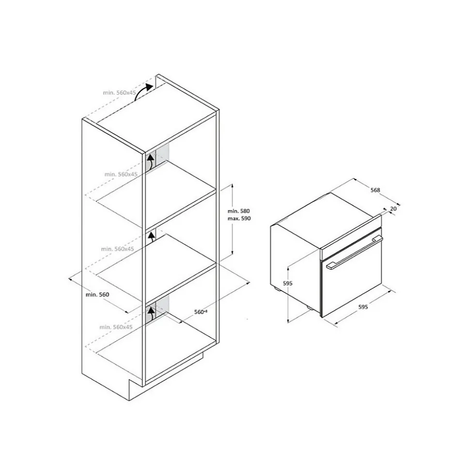 Four intégrable multifonction 78l 60cm pyrolyse Candy – Four Encastrable Pyrolyse CA6N3B3YTX de Candy. Préparez vos plats préférés avec précision grâce au four Candy C-BAKE 600 CA6N3B3YTX et sa cavité XXL de 78 L. Doté de la chaleur tournante, il assure une cuisson homogène et rapide sur plusieurs niveaux sans mélange de saveurs. Son système de nettoyage pyrolyse élimine efficacement les résidus alimentaires pour un entretien sans effort. Son programmateur Smart View UX et ses commandes semi-sensitives offrent une navigation fluide et intuitive. Profitez de la connectivité Wi-Fi et Bluetooth avec l’application hOn qui propose plus de 300 recettes automatiques et un contrôle à distance. La porte froide à 4 vitres garantit une sécurité optimale, même en cas de températures élevées. Sa classe énergétique A++ assure une consommation réduite tout en maintenant des performances optimales. Avec 10 fonctions de cuisson, dont chaleur pulsée, supergril et mode éco, adaptez vos préparations selon vos besoins. – Type de produit : Four Encastrable.Type de four : Four électrique.Capacité nette du four : 78 L.Classe d’efficacité énergétique (ancienne) : A++.Consommation d’énergie (conventionnelle) : 0.99 kWh.Consommation d’énergie (convection forcée) : 0.54 kWh.Nombre de fours : 1.Taille du four : Grand.Grill : Oui.Cuisson par convection : Oui.Fonction de cuisson de pizza : Oui.Autonettoyant : Oui.Méthode de cuisson au four : Multitech.Le mode ECO : Oui.Quantité de programmes de cuisson : 12.Type de nettoyage : Hydrolytique + Pyrolytique.Placement de l’appareil : Intégré.Type de commande : Rotatif, Tactile.Écran integré : Oui.Position de contrôle : Devant.Couleur de la poignée : Acier inoxydable.Boutons de couleur : Acier inoxydable.Type d’écran : LED.Emplacement charnière de porte : Bas.Matériau de la porte : Verre.Porte à fermeture à amortissement :