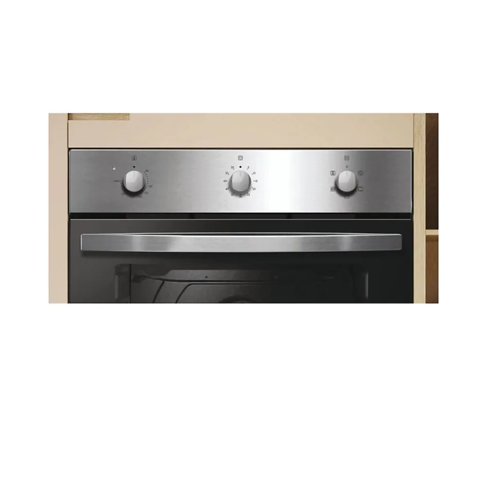 Four intégrable multifonctions 65l 60cm acier Candy – Si vous pensez rénover votre cuisine, c’est idéal le four de Candy FIDC X502. Un design épuré qui s’adapte parfaitement au style de votre cuisine.Four encastrable multifonctions (gril, convection naturelle, chaleur tournante).Modes de cuisson : Chaleur tournante, Convection naturelle, Cook Light, Gril. – Type : Four à convection.Type de pose : Encastrable.Classification énergétique: A.Type d’énergie : Electrique.Capacité : 65 L.Nombre de fonctions : 5.Modes de cuisson : Multifonctions (gril, convection naturelle, chaleur tournante).Conso. convection naturelle : 0.98 kWh (par cycle).Conso. convection forcée : 0.78 kWh.Puissance de raccordement : 2100 W.Informations électriques : 220-240 V • 50 Hz • 16 A.Caractéristiques : Lumière intérieure.Type de commande : Plaque Tournante.Type de porte : Tempérée.Mode de nettoyage : Manuel.Produit à brancher: Oui.Type de contrôle : Mécanique.Matériau de la porte : Verre.Câble électrique : 1.4 m.Accessoires fournis : 2 grilles, 1 lèchefrite.Grille : 2.Cavité : 1.Type de prise : Prise EU.Couleur : Acier.Largeur : 60 cm.Dimensions du produit : 59.5 x 59.5 x 56.8 cm.Poids net (kg) : 24.1.