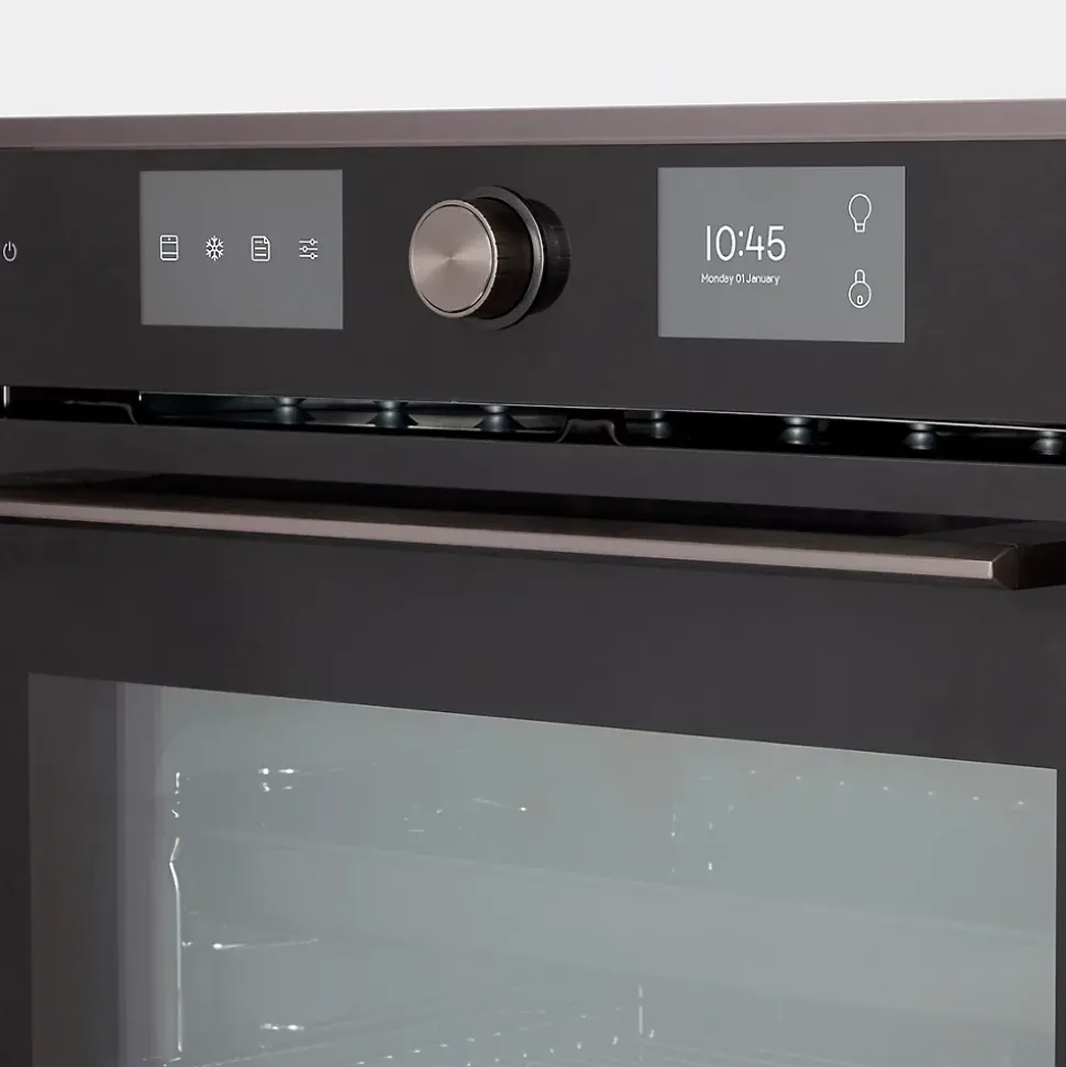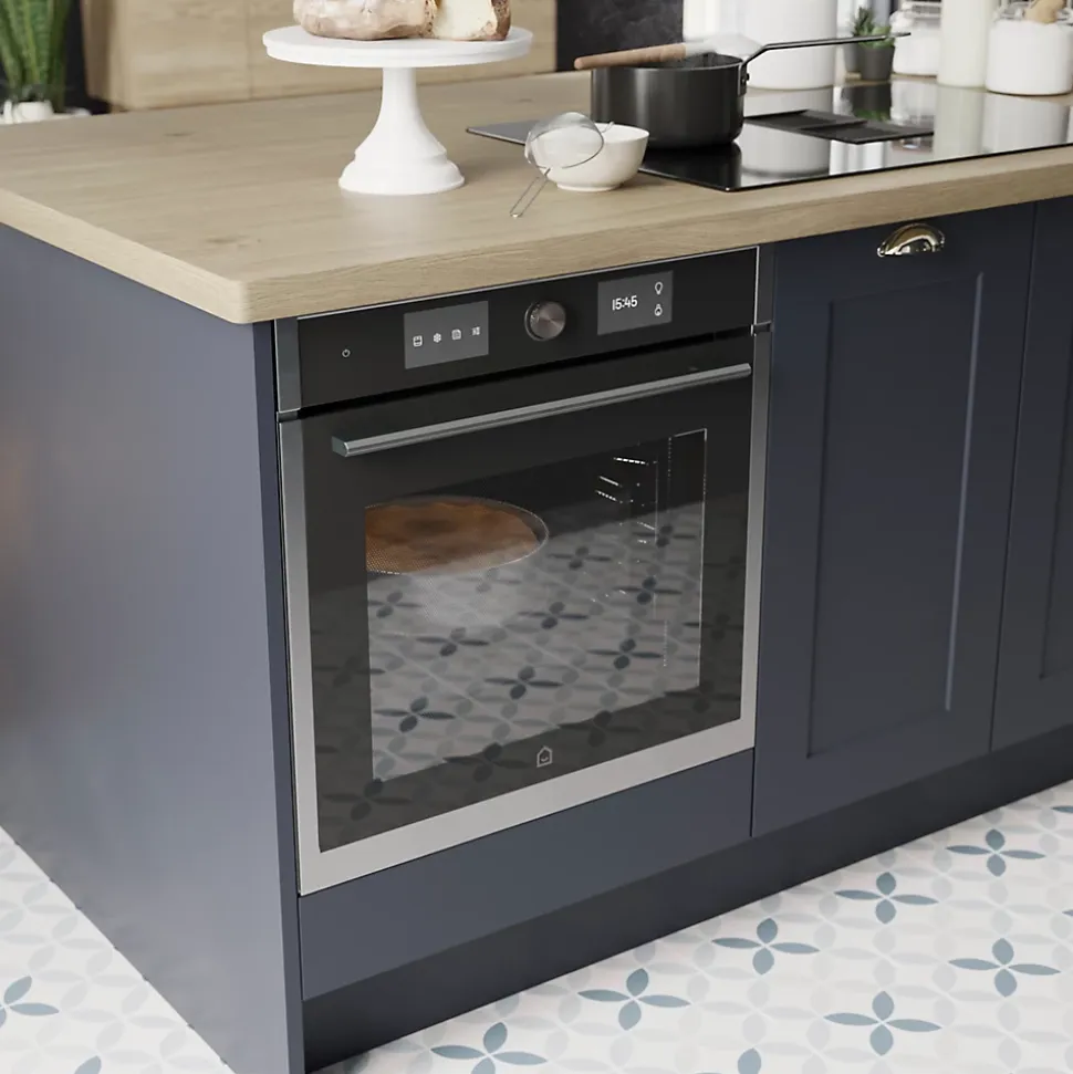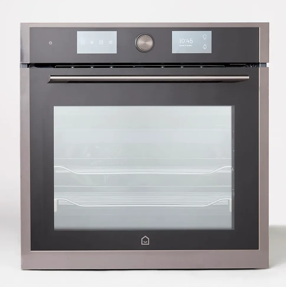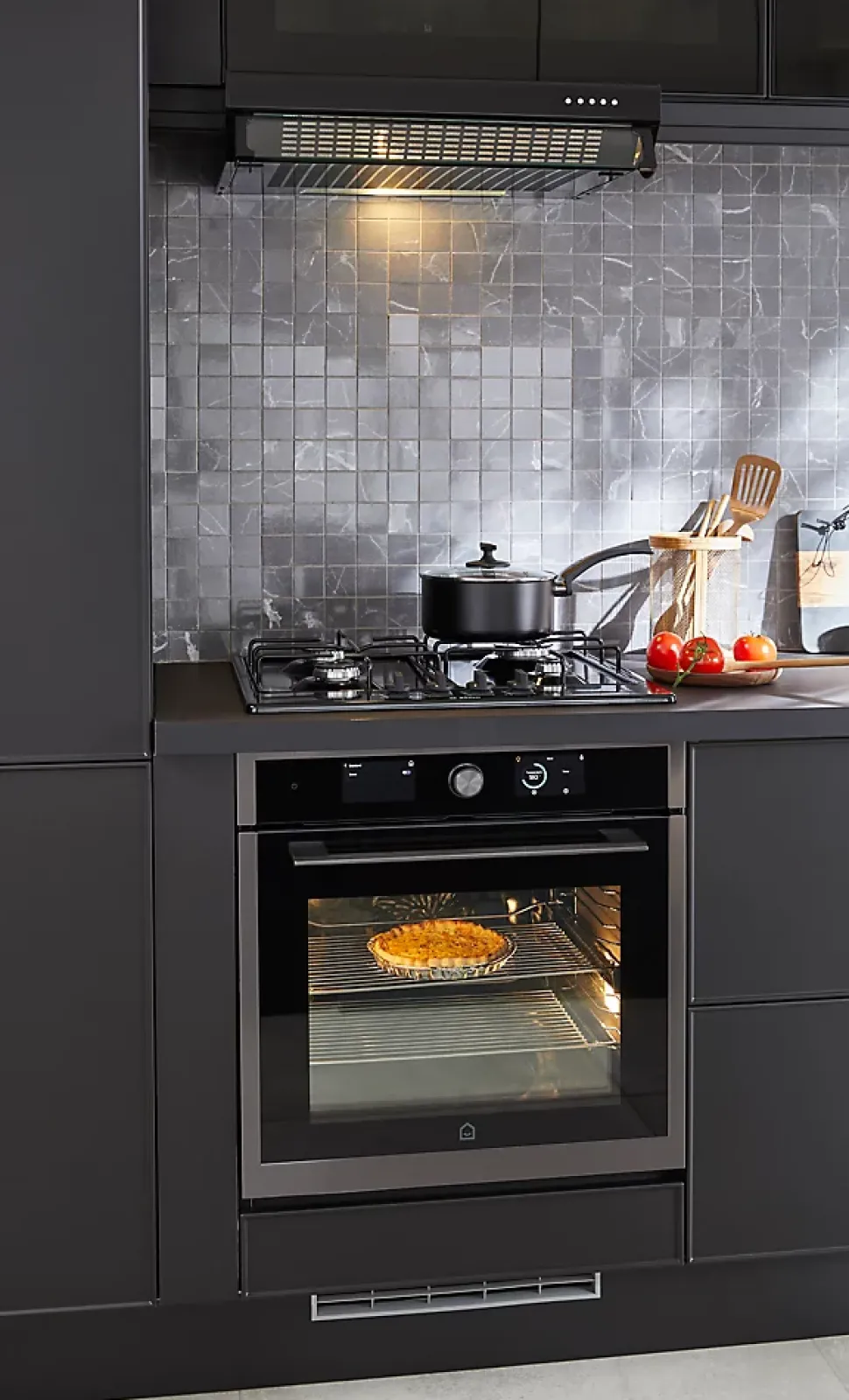 Nos appareils électroménagers GoodHome sont remplis de fonctionnalités qui les rendent simples à utiliser et facilitent la cuisine. Le four multifonctions GoodHome comprend deux écrans TFT couleur faciles à utiliser offrant une commande intuitive, ainsi qu’un bouton de commande central pour une utilisation aisée. Dispose d’une capacité de 71L, de glissières télescopiques pour un accès sûr, de 5 positions de cuisson, de 2 grilles, d’une plaque à pâtisserie et d’un repose-plat ainsi que de deux lumières intérieures pour un éclairage optimal. Les treize options du menu, comprenant les modes chaleur tournante, convection, économique et chauffe-plat, permettent une expérience de cuisson simple et flexible. Il est possible d’enregistrer douze préférences de cuisson prédéfinies afin d’y accéder facilement et de régler la minuterie afin d’éteindre automatiquement le four ou de surveiller le temps de cuisson. La cuisson intuitive entre ainsi dans une nouvelle ère. Fonctions supplémentaires: options d’interruption de la cuisson, de sécurité enfant et de décongélation. La fonction boost permet de réduire le temps de préchauffage. La cuisson instantanée est activée en quelques secondes en tournant le bouton central et en appuyant sur l’écran.