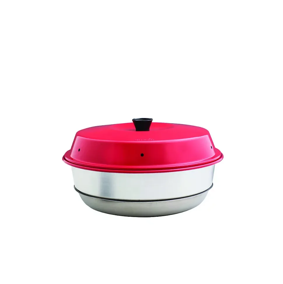 Un four portable robuste, ingénieux et compact qui vous permet de déguster de bons petits plats variés.Le four Omnia est devenue un incontournable en camping ou dans les véhicules de loisirs (camping-car, caravane, fourgon aménagé, van, bateau…).Il est constitué de 3 éléments : un châssis en inox SS430 robuste avec un trou central, un moule de 2 litres en aluminium de 25 cm de diamètre, également troué en son centre, et un couvercle en aluminium.Il vous suffit de le poser sur une gazinière, sur un réchaud à gaz ou autre (sauf des plaques vitrocéramiques ou à induction) pour pouvoir réaliser pratiquement les mêmes recettes que dans un four traditionnel !La chaleur se propage de manière uniforme par le trou central, ce qui permet une cuisson douce et homogène.Faite cuire du pain, des croissants, des quiches, des gâteaux, des tartes, des gratins, des viandes, des pizzas, des lasagnes et bien plus encore !Châssis en acier inoxydable de qualité SS430Diamètre : 250 mmHauteur : 70 mmHauteur totale utile poignée comprise : 140 mmLe moule Omnia et le couvercle sont en aluminium.Poids : environ 0,5 kg