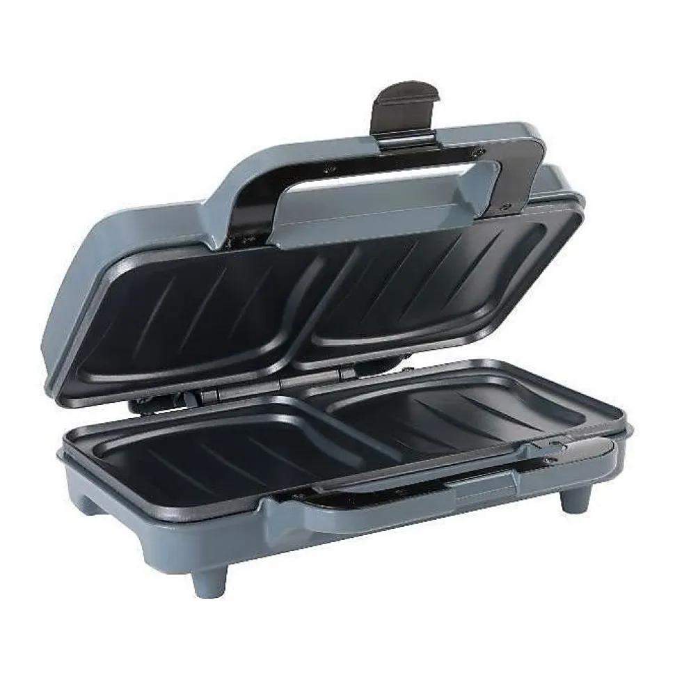 Un format large pour réaliser grands croque-monsieur de 14 x 15 cm à la fois – Puissant pour une cuisson rapide et uniforme – Plaques fixes antiadhésives 15 x 25 cm faciles à nettoyer d’un coup d’éponge – Témoins lumineux – Pratique, l’appareil se range à la verticale pour un encombrement minimum dans vos placards – Range-cordon – Pieds antidérapants – Dimensions 28 x 24 x 9 cm – Poids 1.6 kg