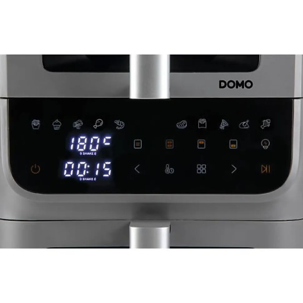 Friteuse sans huile DOMO – Airfryer DO550FR – Design vertical : 2 tiroirs empilés, économise 30 % d’espace – Capacité 10 L – Double cuve 3.5 L + 6,5 L – 10 programmes de cuisson – 2500 W – Tiroirs réglables indépendamment pour une cuisson simultanée – Température réglable de 80°C a 200°C – Minuteur jusqu’a 60 minutes – Écran LED avec commande tactile : réglage numérique du temps et de la température – Paniers et grilles avec revetement antiadhésif sans PFAS – Hublots de contrôle pour vérifier la cuisson.