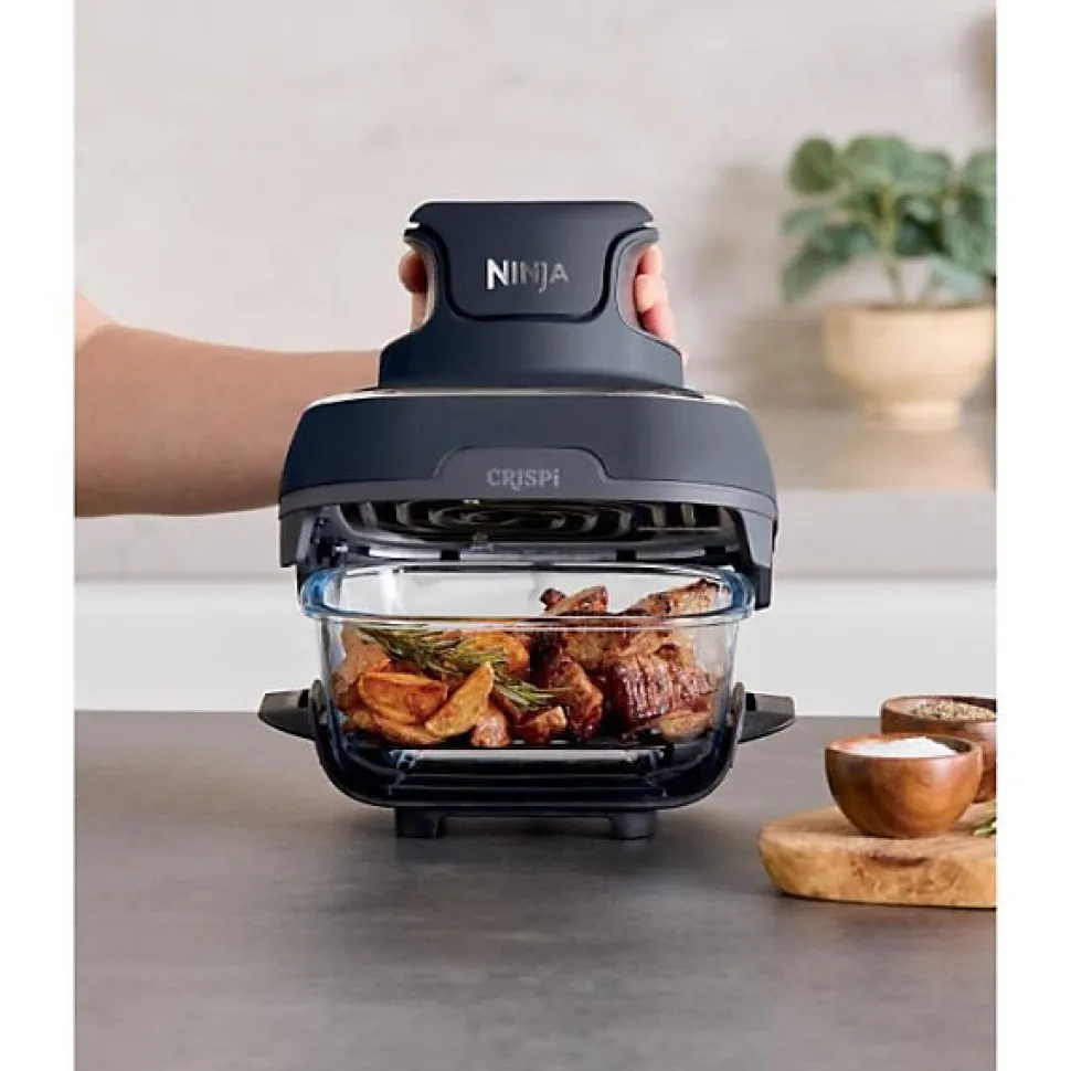 Friteuse sans huile Ninja Crispi FN101EUGY 1700 W, système 4-en-1 (Air Fry, Roast, Recrisp, Keep Warm) avec deux bols en verre empilables (3,8 L + 1,4 L), cuves amovibles et compatibles lave-vaisselle ; compacte et portable, idéale pour petits espaces.
