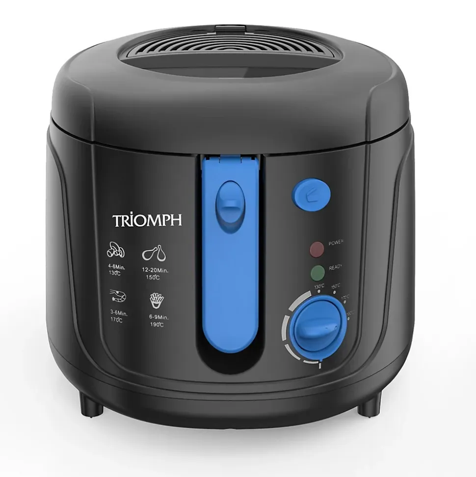Friteuse Electrique Triomph ETF2158 :- Parois froides- Capacité : 2,5 L soit 600g- Température réglable par bouton de contrôle- Revêtement antiadhésif pour un nettoyage facile- Témoin lumineux de fonctionnement- 2 filtres pour réduire les odeurs durant la cuisson- Poignée multifonction avec système de levage- Couvercle et panier amovible pour un nettoyage facile (cuve non amovible)- Grande fenêtre d’observation- Verrouillage de sécurité- Pieds antidérapantsCaractéristiques techniques :- Tension 220-240V- Puissance Electrique 1500 -1800W- Fréquence 50/60Hz- Matière Corps Plastique – Capacité 2,5L- Protection anti surchauffe OUI- Pieds anti-dérapants OUI- Dim. Produit 308 x 157 x 312 mm- Poids : 2,1 kg…