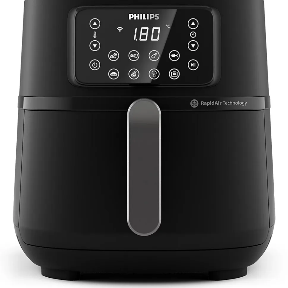 La friteuse Philips Airfryer connectée série 5000 XXL HD9285/93 utilise la technologie Rapid Air pour des aliments croustillants à l’extérieur et tendres à l’intérieur. Avec une capacité de 7,2 litres, elle peut cuire jusqu’à 6 portions. Puissance de 2000 W, température réglable de 40 à 200 °C, 16 fonctions de cuisson, connectivité Wi-Fi avec application HomeID, revêtement antiadhésif et pièces compatibles lave-vaisselle. Design élégant noir et argent foncé, garantie mondiale de 2 ans.