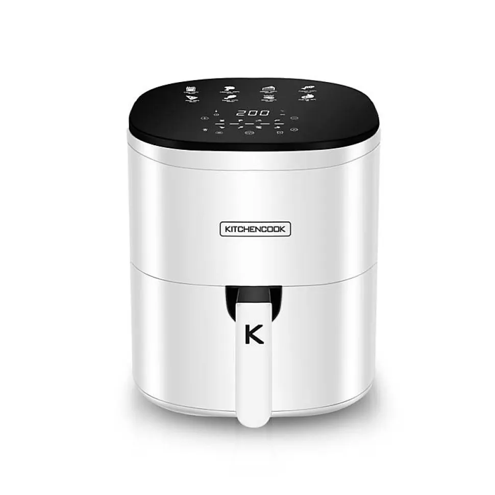 La friteuse Kitchen Cook AIRMED6 WHITE 6.5L révolutionne la cuisine avec une cuisson saine grâce à l’air pulsé à 360°, proposant 8 programmes automatiques, plage de température 30°C à 200°C, capacité familiale, économie d’énergie jusqu’à 75% comparé à un four traditionnel, minuterie numérique et facile à nettoyer avec panier amovible antiadhésif.