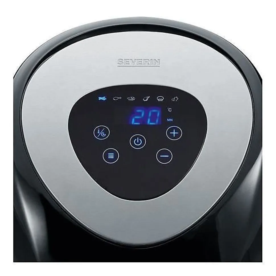 Friteuse Air Fryer SEVERIN 2430 1500W 3,2L avec 6 programmes automatiques, cuisson saine sans huile, panier amovible et antiadhésif compatible lave-vaisselle, écran LCD tactile, sécurité anti-surchauffe. Couleur noir et inox brossé.