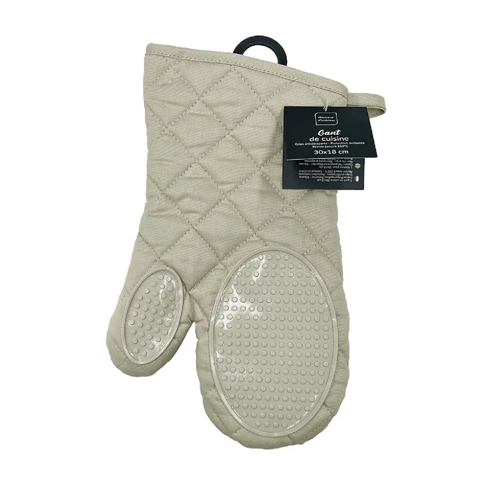 Informations Techniques :Dimensions : L. 30 x l. 18 cmMatières :Extérieur : 100% Coton coque néoprène Intérieur : 100% PolyesterSpécificités :Résistant & PratiqueGant de cuisineGrips antidérapantsRenfort en siliconeRésiste jusqu’à 250°CEntretien :Lavage à 30°Pas de séchage en machinePas de repassagePoids : 0,08 kgCouleur : Lin