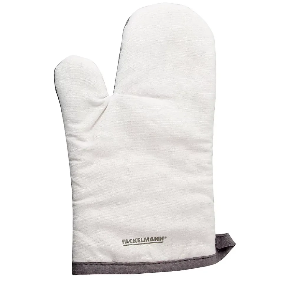 - DESCRIPTION : Fackelmann vous propose ce gant de cuisine gris et blanc. Ce gant vous protège de la chaleur jusqu’à 250°C pendant une durée d’environ 15 secondes.