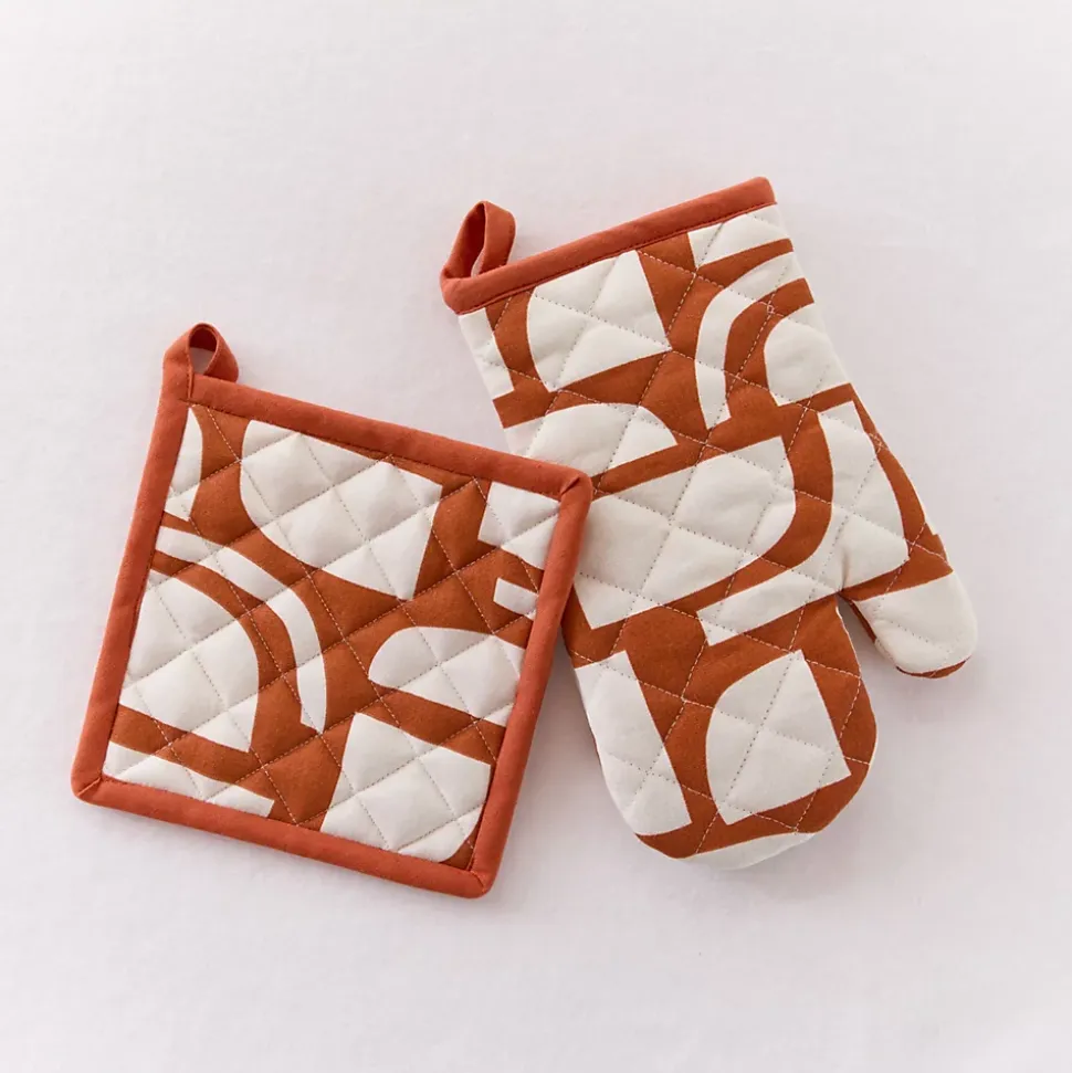 Gant et manique imprimé rouge et blanc l. 20 X L. 28 cm Guy Levasseur