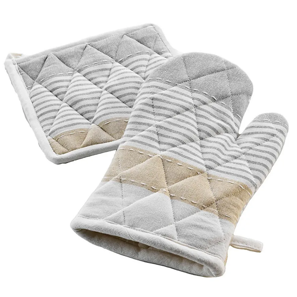 Informations Techniques :Dimensions : Gant : L. 28 x l. 18 cmManique : L. 20 x l. 20 cmMatières : 66% Coton & 34% PolyesterSpécificités :Intemporel & UtileGant de cuisine avec maniqueImprimé à rayuresLabel Oeko-TexConseil d’entretien : Lavage à 40°Pas de séchage en machineRepassage à 150°Poids : 0,11 kgCouleur : Gris