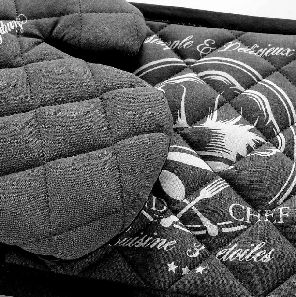 Informations Techniques :Dimensions : Gant : L. 28 x l. 18 cmManique : L. 20 x l. 20 cmMatières : Extérieur : 100% Coton Interieur : 100% PolyesterSpécificités :Pratique & UtileGant & maniqueInscription « Grand Chef »Label Oeko-TexEntretien : Lavage à 40°Pas de séchage en machineRepassage à 150°Poids : 0,11 kgCouleur : Gris