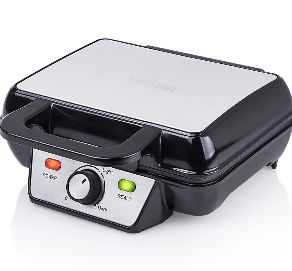 Gaufrier Tristar WF-2195 avec revêtement antiadhésif, thermostat réglable, pieds antidérapants, et puissance de 1000 W.
