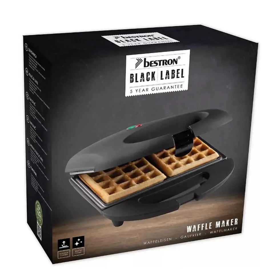 Gaufrier 700w noir Bestron – Gaufrier ASW401BL de Bestron.Moule permettant de préparer des gaufres délicieuses en un tournemain. Boîtier résistants à la chaleur. Revêtement antiadhésif. Equipés de lampe témoin de “prêt à l’emploi” et “marche/arrêt”. Poignée isolée. – Type de produit : Gaufrier.Puissance (W) : 700.Alimentation : 220-240 V.Fréquence (Hz) : 50/60.Revêtement anti-adhésif : Oui.Autre(s) : Lampe témoin de ‘prêt à l’emploi’ et ‘marche/arrêt’, Poignée isolée.Couleur : Noir.Poids (kg) : 1.41.