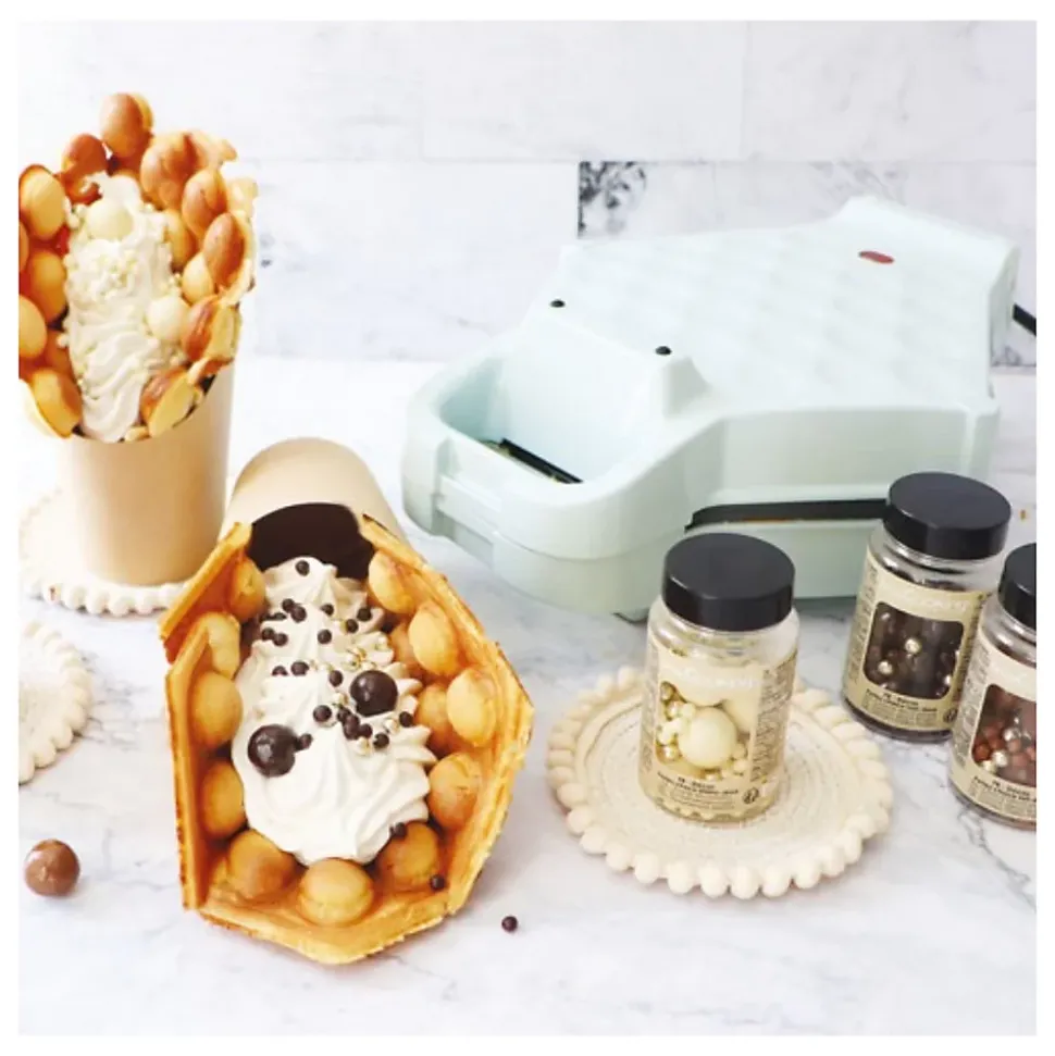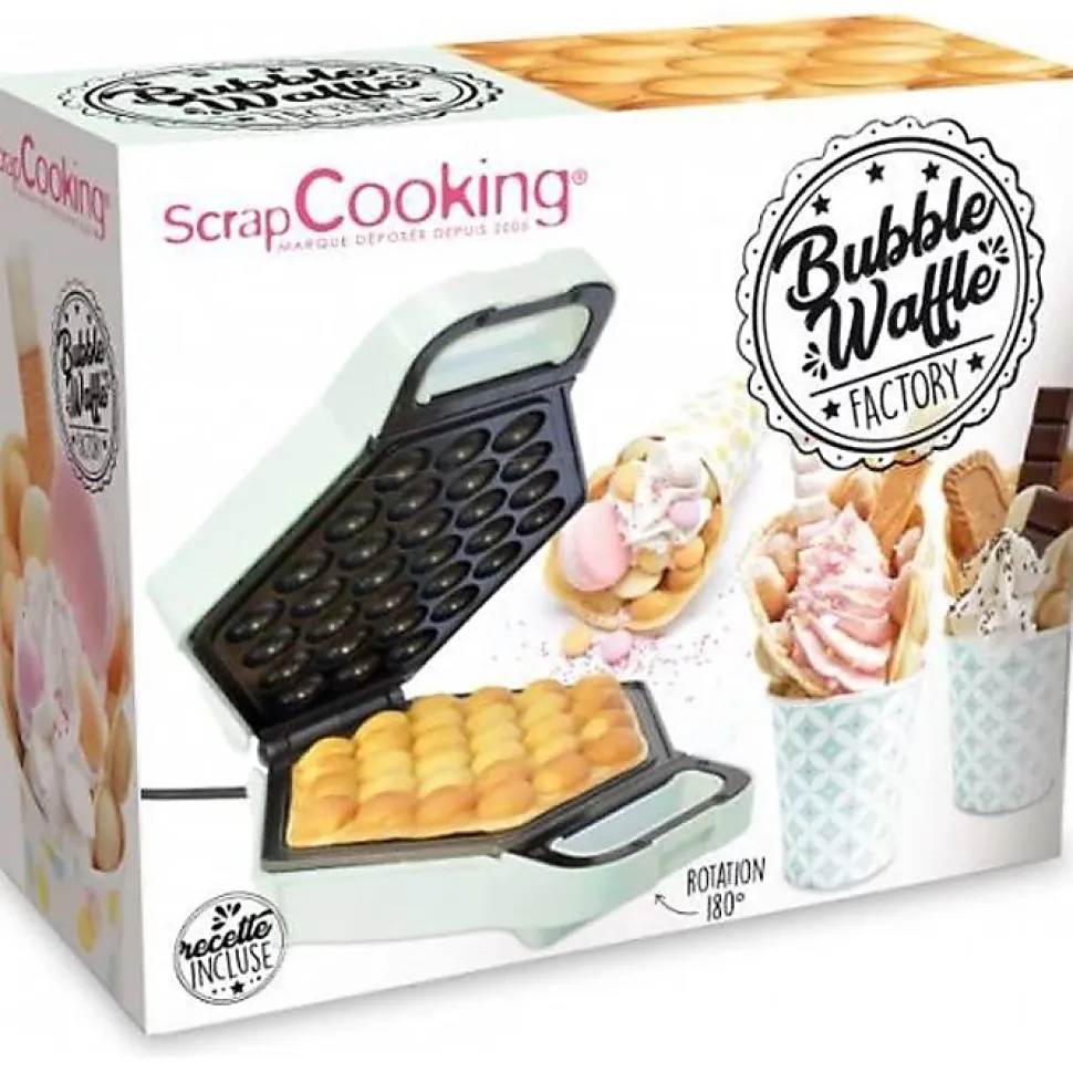 Ce gaufrier à bulles ScrapCooking est idéal pour réaliser des gaufres à bulles. Avec une puissance de 700W et une plaque chauffante de 20cm, il convient au contact avec les aliments. Ses dimensions sont de 28 x 22 x H11 cm et il fonctionne avec une alimentation de 220/240 V ~ 50/60 Hz. Sa couleur principale est le vert et il est également disponible en bleu.