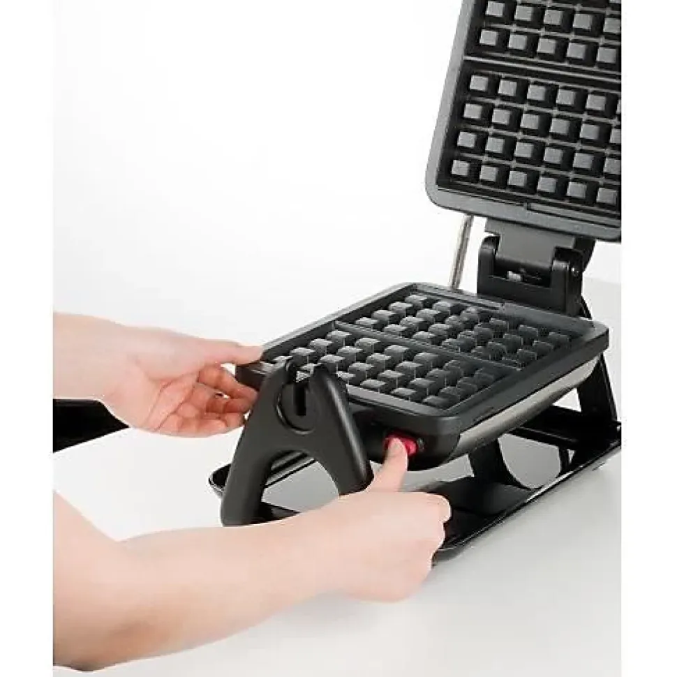 Ce gaufrier semi-professionnel TEFAL WM755D12 dispose de plaques en aluminium avec revêtement anti-adhésif, amovibles et compatibles lave-vaisselle. Il est équipé d’un thermostat réglable et d’une puissance de 1200 W. Les poignées sont rabattables et un bouton d’éjection de la plaque est présent. La couleur principale est noire et la couleur de l’appareil est inox.