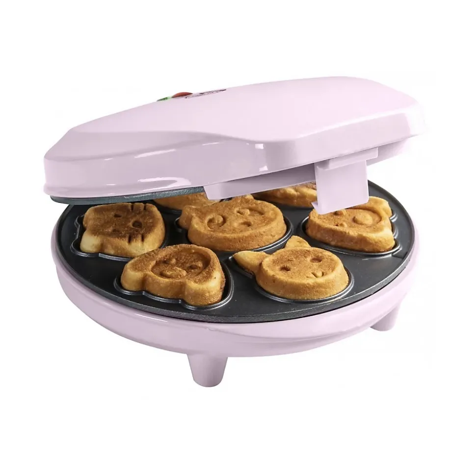 Gaufrier forme de 7 animaux 700w rose Bestron – Gaufrier Bestron AAW700P avec des motifs d’animaux amusants. Contrôle automatique de la température avec indicateur de fin de cuisson. Atteinte de la température requise rapidement en quelques minutes. Revêtement antiadhésif pour un retrait facile des biscuits et un nettoyage aisé. Boîtier et poignée résistants à la chaleur. – Type de produit : Gaufrier.Revêtement antiadhésif.Enroulement pratique du câble.Longueur du cordon : 75 cm.Pieds antidérapants.Puissance maximale : 700 W.Alimentation : 220-240 V / 50-60 Hz.Label GS pour une qualité et une sécurité optimales.Couleur : Rose.Dimensions (LxlxH) : 25,5 x 25 x 9,5 cm.Poids : 1,25 kg.