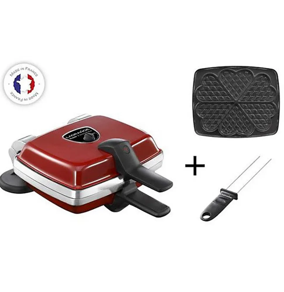 Découvrez le gaufrier réversible LAGRANGE 39514, idéal pour réaliser 6 gaufres en forme de coeur. Avec ses plaques en fonte d’aluminium et son revêtement antiadhésif, il assure une cuisson homogène. Livré avec un pic à gaufres, il est équipé d’un thermostat de sécurité et d’un voyant de contrôle pour une utilisation en toute sécurité.