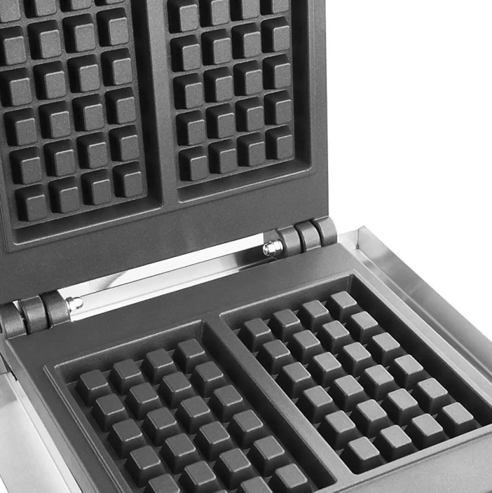 Gaufrier Professionnel 1,6 kW – Jusqu’à 60 Gaufres/h Gaufrier compact en acier inoxydable avec plaques en fonte. Pour confectionner des gaufres de 160 x 100mm. Idéal pour les établissements professionnels. _ 1,6 kW. Jusqu’à 60 gaufres/heure _ 245(H) x 325(L) x 400(P) mm _ Plaques de cuisson antiadhésives robustes en fonte d’aluminium _ Revêtement antiadhésif de qualité supérieure conçu pour durer _ Production de 60 gaufres/heure _ Plage de température 60°C à 300°C _ Bac de récupération amovible facile à nettoyer _ Minuterie numérique : obtenez le même résultat à chaque fois _ Contrôle précis et variable de la chaleur _ Produit des gaufres de 165 x 100 mm
