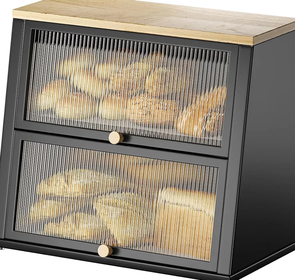 Grande capacité et gain de place : notre grande boîte à pain à deux couches est assez grande (38 L x 18,5 à 25 l x 34 H cm/15 pouces L x 7,28 pouces à 9,84 pouces l x 13,38 pouces H) pour la plupart des utilisations personnelles et familiales. Le grand espace exclusif empêche le pain d’être écrasé, tandis que le design à double couche rend votre cuisine plus rangée sans prendre trop de place sur le plan de travail.Panneau de porte de fenêtre Stiped : intimité et beauté. La boîte à pain de cuisine est floue et menaçante de l’extérieur, même si l’intérieur est rempli. Le panneau de porte ondulé ajoute une touche de mouvement et de vie à votre plan de travail.Multifonction : vous pouvez également utiliser notre boîte à pain noire pour ranger des bocaux ou d’autres ustensiles de cuisine tels que des boîtes, des biscuits, des collations et plus encore. La partie supérieure en bois de la boîte à pain offre encore plus d’espace de rangement.Gardez les aliments frais et stables : le design magnétique maintient la porte de la boîte à pain fermée et garde les aliments propres et frais. Le fond est équipé de 4 patins antidérapants pour rendre la boîte à pain plus stable.