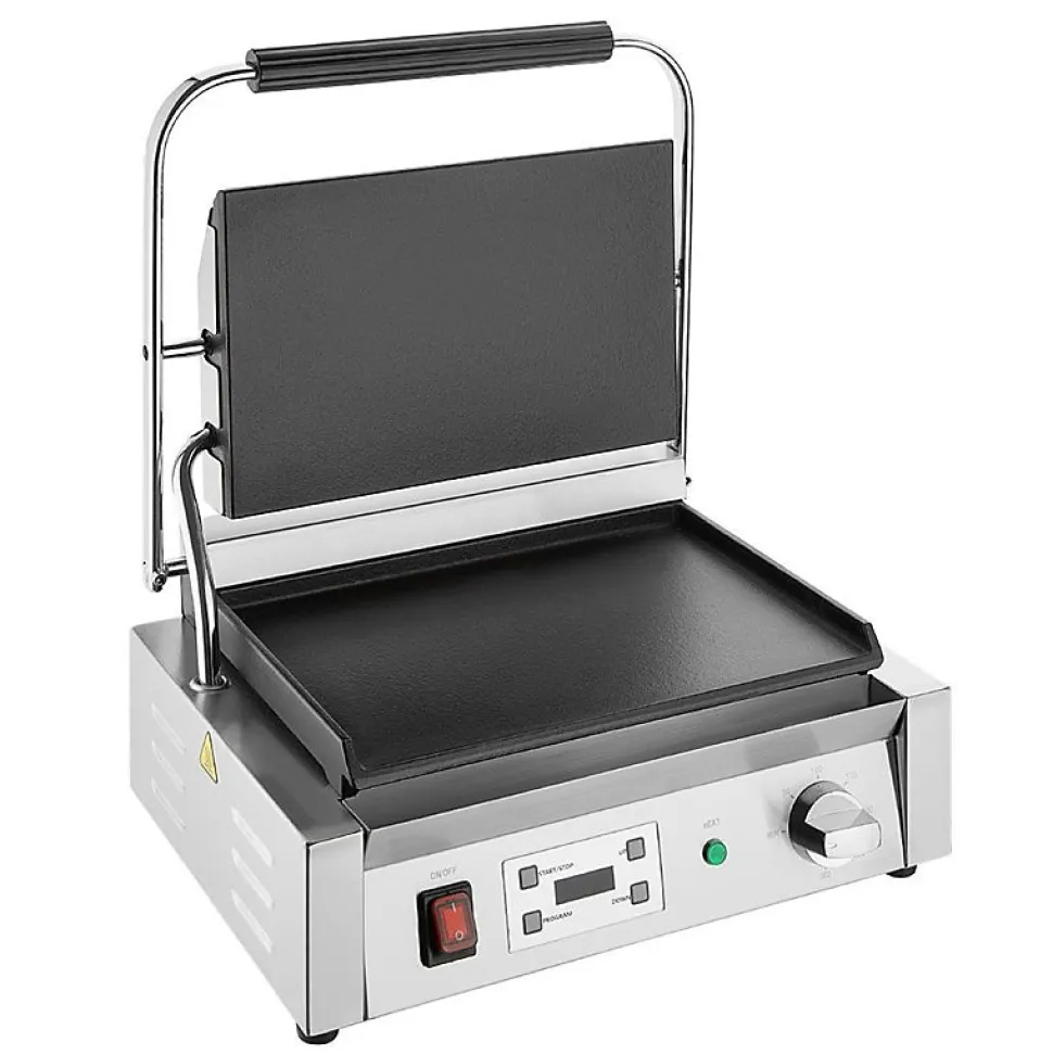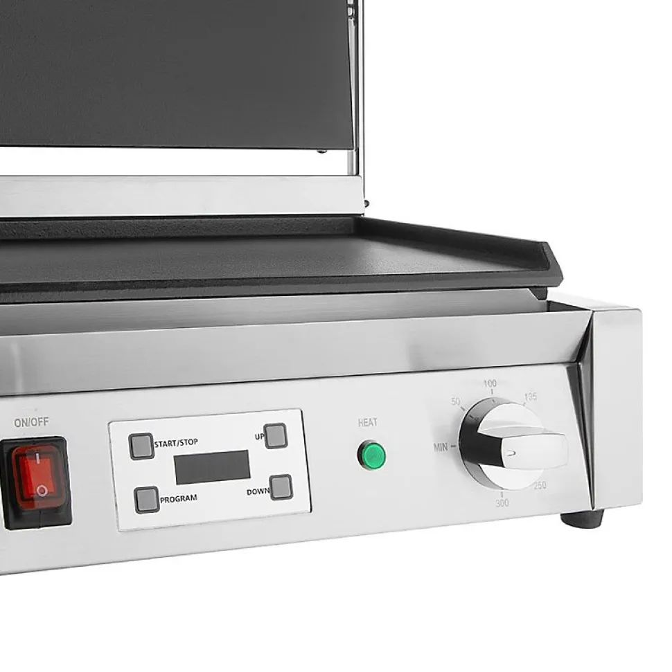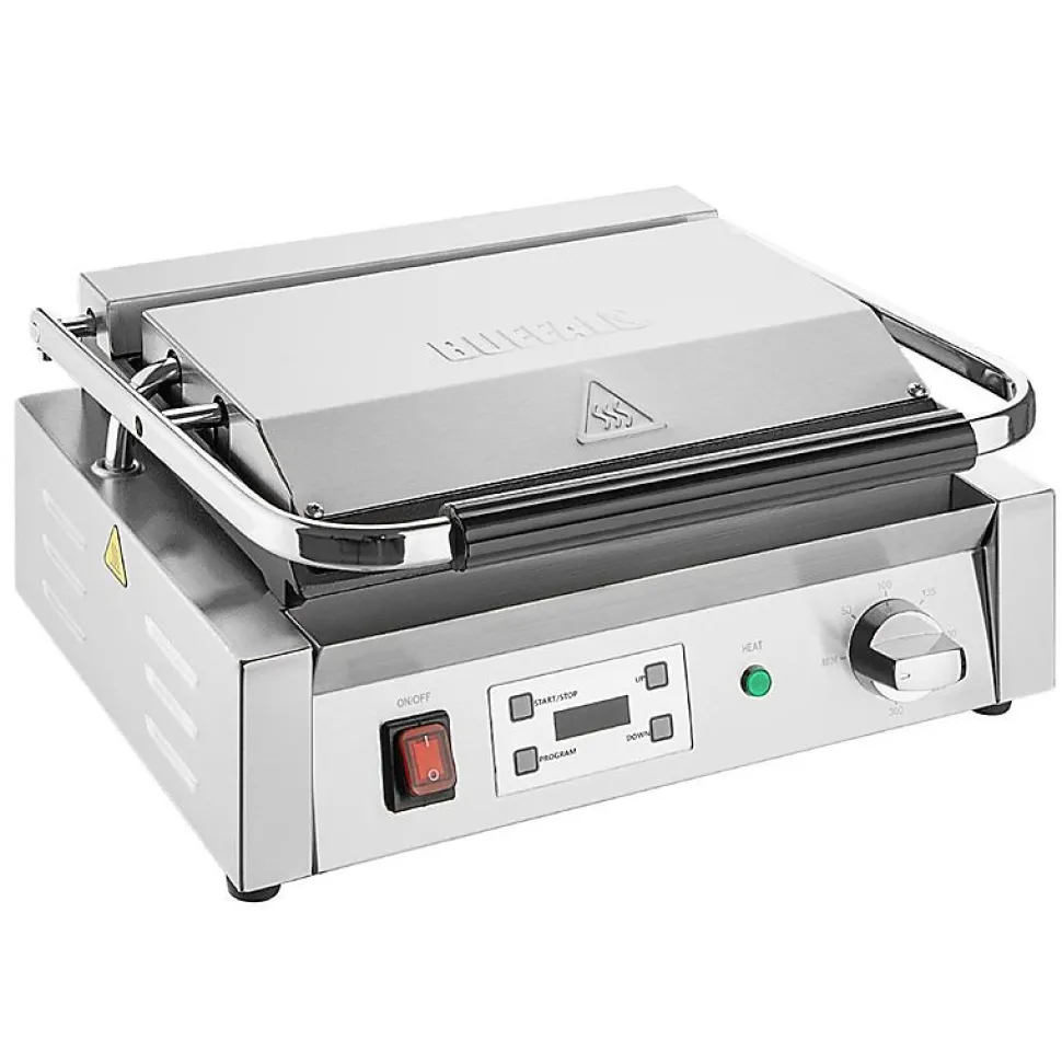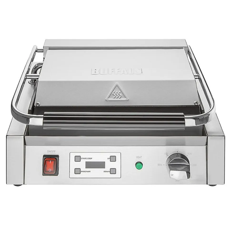 Donnez de l’énergie à votre cuisine avec les grils de contact extra-larges Buffalo. Conçus pour être utilisés dans des cuisines au rythme soutenu, ces grils offrent une zone de cuisson spacieuse et des commandes de chaleur réglables, garantissant que de grandes quantités d’aliments puissent être grillées avec précision. Les matériaux résistants offrent une excellente durabilité. Si vous cherchez un gril haute capacité à la fois puissant et fiable, ne cherchez plus. Le gril de contact extra large Buffalo est conçu pour une utilisation professionnelle. Le gril possède des plaques de cuisson en fonte émaillée supérieures et inférieures, donc que vous cuisiniez des œufs, des steaks, du poisson ou du bacon, le grill cuit rapidement et uniformément.Les commandes par cadran simples et le minuteur programmable numérique intégré offrent une grande précision de cuisson, vous permettant de cuisiner à la perfection. Le nettoyage est également simple, le gril possède un bac de récupération de graisse amovible pratique, facile à vider lorsque nécessaire.Dimensions: 200(H) x 430(L) x 310(P) mmMatériel: InoxAlimentation: 220-240VPoids: 19,2 kgPrise: OuiMinuteur numérique avec 4 programmes pour une cuisson constantePlaques de gril en fonte émaillée haute résistance durablesBac de récupération de graisse amovible – facile à nettoyer sans déplacer le grilPlaque supérieure contrebalancée – positionnement sans effort de la plaque sur les alimentsPlage de température 50-300°CLa fonte émaillée est facile à nettoyer et à entretenir<