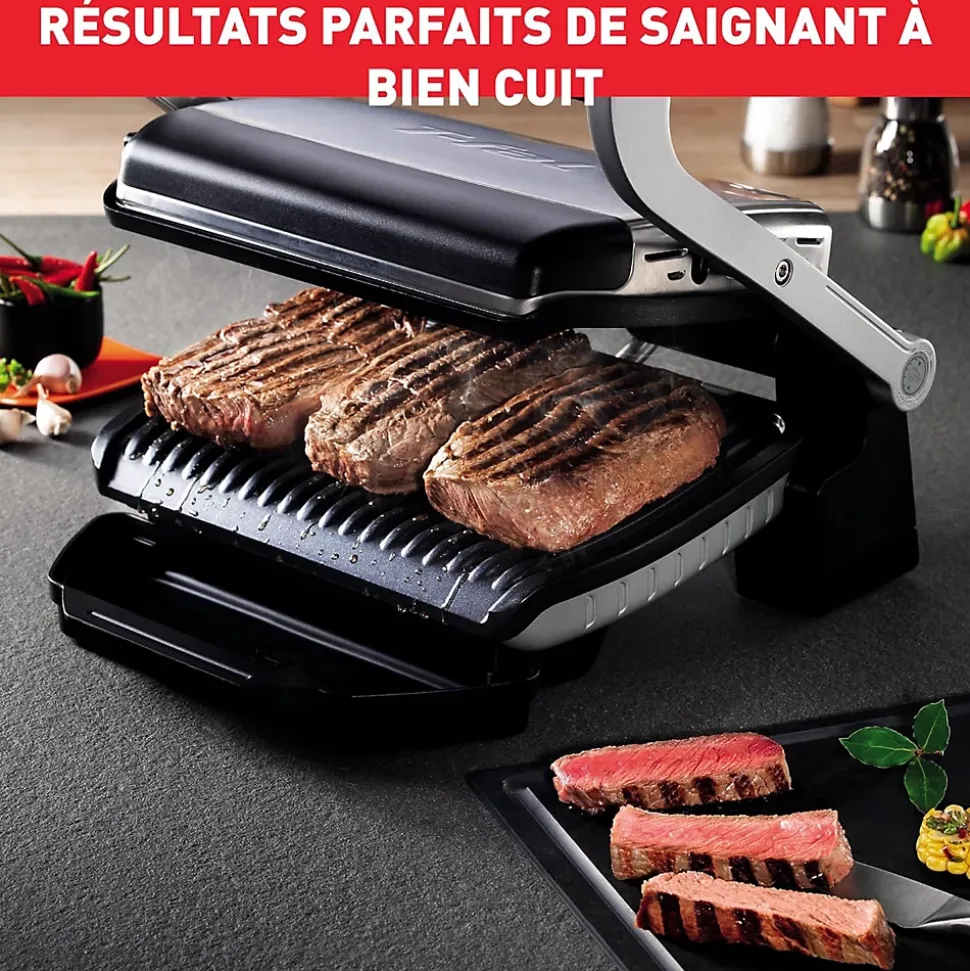 Profitez de grillades parfaites de saignantes à bien cuites avec l’OptiGrill+ doté d’un thermostat intelligent qui mesure l’épaisseur des aliments et ajuste automatiquement le temps de cuisson. Grâce à son anneau lumineux indicateur, suivez la progression sans aucune surveillance. Ses 6 programmes automatiques permettent de cuire viandes, poissons et légumes avec précision, pour des résultats toujours réussis. Avec sa puissance de 2000 W, il assure une cuisson rapide et homogène, idéale pour jusqu’à 4 personnes. Sa conception favorise une cuisson plus saine avec jusqu’à 44 % de matières grasses en moins. Les plaques antiadhésives amovibles ainsi que le bac à jus compatible lave-vaisselle garantissent un nettoyage simple et rapide. Élégant en finition inox, il allie performance, praticité et durabilité.