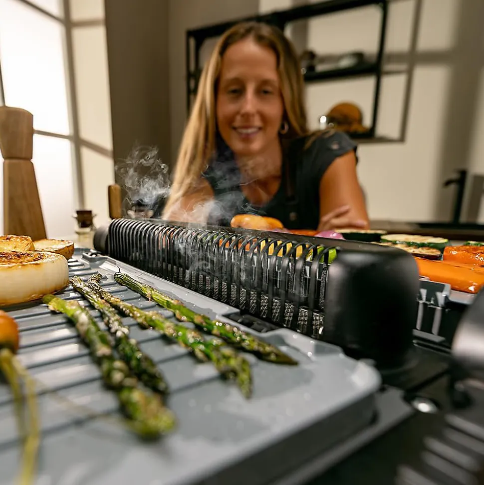 Le grill Cecotec 2000 W avec fonction Smash offre puissance et précision pour des résultats professionnels à domicile. Équipé d’une sonde de température intelligente, il contrôle la cuisson interne des aliments afin d’obtenir un résultat parfait à chaque utilisation. Ses plaques réversibles permettent une utilisation en mode plancha ou gril, avec chauffage indépendant réglable de 80 à 230 °C pour une flexibilité maximale. Sa fonction Smash Burger garantit une saisie optimale et une cuisson sans fumée. Grâce à sa surface de 30 x 21 cm, il convient aux repas familiaux. Les plaques amovibles compatibles lave-vaisselle et le bac récupérateur de graisse facilitent l’entretien, tandis que son design en acier inoxydable assure robustesse et élégance.