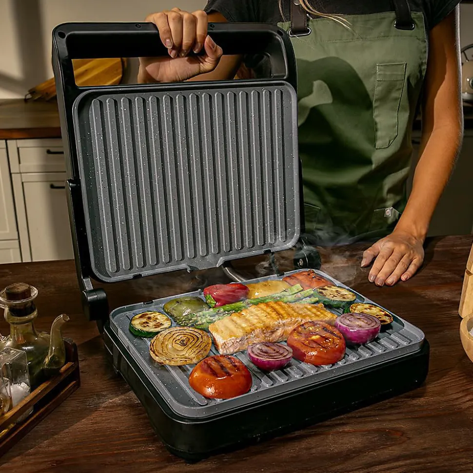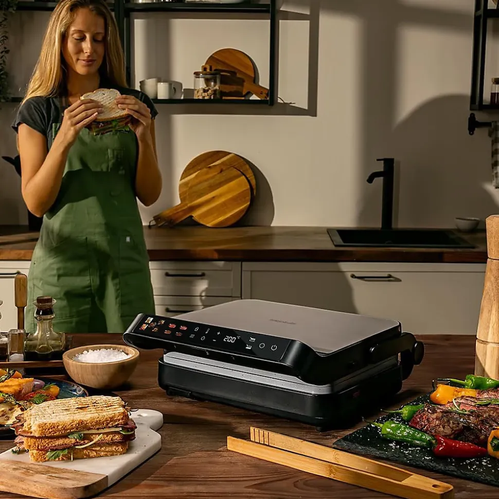 Le grill Cecotec 2000 W avec sonde de température intelligente garantit une cuisson précise et maîtrisée. La sonde contrôle et ajuste la température interne des aliments pour des résultats parfaits à chaque utilisation. Ses plaques doubles peuvent chauffer séparément de 80 à 230 °C, offrant une grande flexibilité pour différentes préparations. Sa large surface de 30 x 23 cm permet de cuisiner pour toute la famille. Les plaques amovibles compatibles lave-vaisselle et le bac récupérateur de graisse facilitent le nettoyage. Son couvercle en verre et son corps en acier inoxydable apportent robustesse et élégance à votre cuisine.