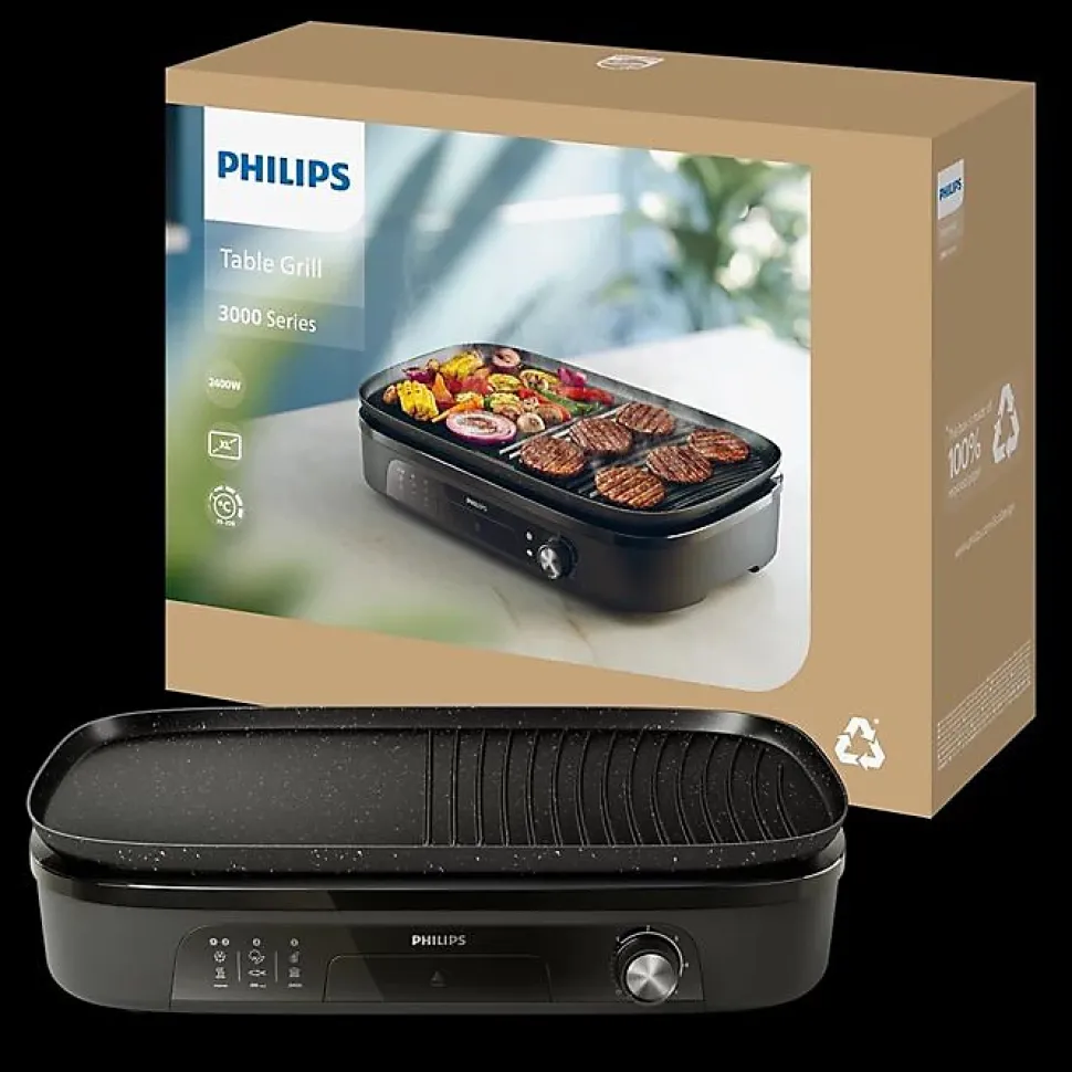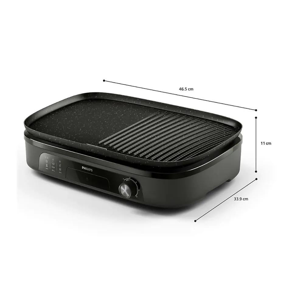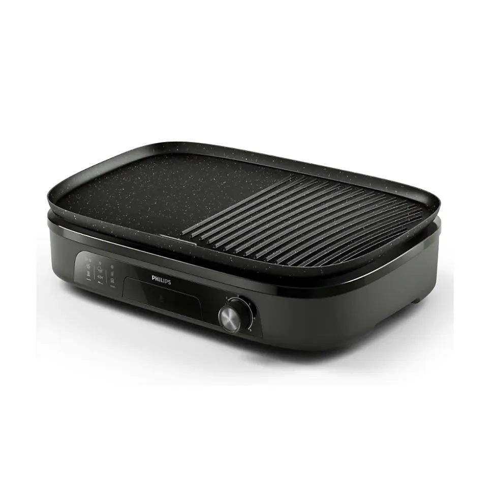 Grill viande 2400w Philips – Grill-viandes HD6210/90 de Philips. Pour de fantastiques grillades en famille. Un grand gril polyvalent pour vos repas de famille. Température réglable, pour des résultats parfaits. Cuisez tout : viande, poisson, légumes et œufs.Revêtement à base de pierre de Maifan protégeant des éraflures. Plaques amovibles facilitant le nettoyage.Pièces compatibles lave-vaisselle pour un nettoyage facile. Bac à graisse amovible pour un nettoyage facile.Enrouleur de cordon facilitant le rangement. – Type de produit : Grill-viandes.Placement de l’appareil : Pose libre.Nombre de brûleurs : 2 zone(s).Revêtement de la surface de cuisson : pierre.Type de commande : Rotatif.Puissance : 2400 W.Tension d’entrée AC : 220 – 240 V.Fréquence d’entrée AC : 50 – 60 Hz.Nombre de niveaux de puissance : 5.Longueur du câble : 0.8 m.Plaques démontables : Oui.Revêtement anti-adhésif : Oui.Plaque amovible : Oui.Lavable lave-vaisselle : Oui (Pièces amovibles).Thermostat réglable : Oui.Matériau du boîtier/corps : Aluminium, Polycarbonate (PC), Polypropylène (PP), Silicone.Couleur du produit : Noir.