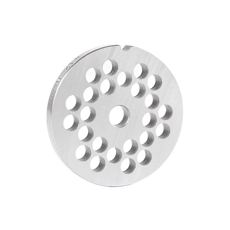 Grille inox 8mm pour hachoir reber n°12 Reber – – Grille inox, diamètre : 6.8 cmTrous de diamètre : 8 mmCompatible avec Hachoir de type N10-12. ( Référence : 9501N)