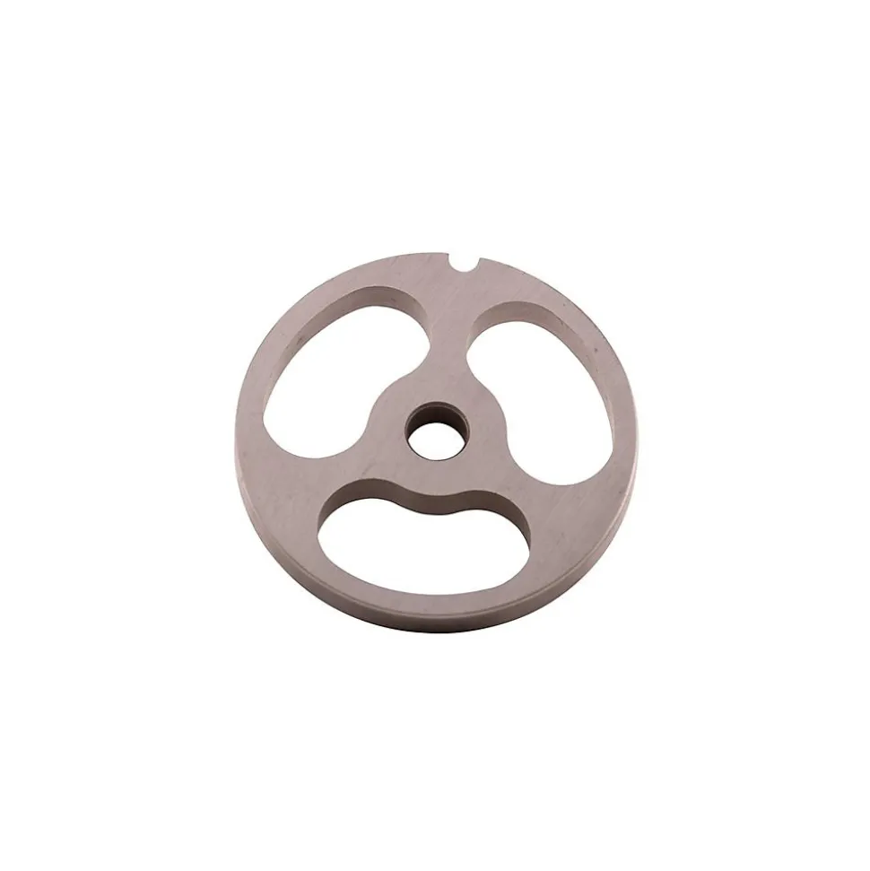Grille de hachoir en acier 3 trous compatible avec le hachoir à viande N°12 REBER. Cette plaque perforée dispose d’une encoche de maintien pour hachoir à viande. Cette grille spécifique vous permettra de faire passer le gras ou les oignons dans vos préparations. Caractéristiques techniques : Matière : Acier type C55 Couleur : gris Diamètre : 70 mm Epaisseur : 8 mm Poids net : 120 g Conseil d’utilisation : Après avoir utilisée la grille, la nettoyer puis la sécher immédiatement. Avant de la stocker, nous vous conseillons de la glisser dans un papier gras. Garantie 2 ans