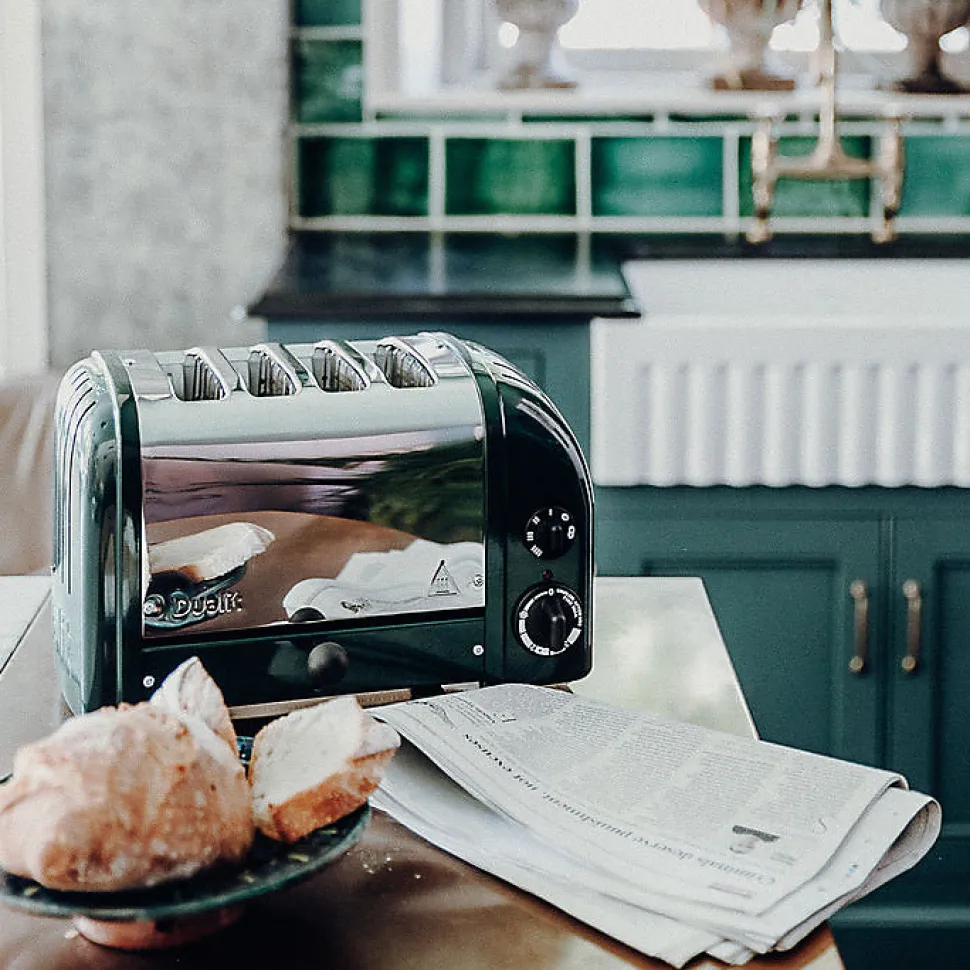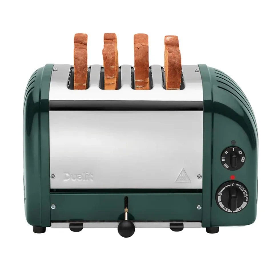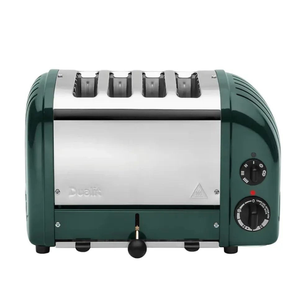 Grille-pain 4 fentes newgen vert Dualit – Le grille-pains 4 fentes NewGen est parfait pour toute la famille. Il offre tout le style et la fonctionnalité que vous attendez d’un grille-pains Dualit, ainsi qu’une fonction décongélation, l’option pour petits pains et bagels, la minuterie mécanique et levier d’éjection. Le sélecteur de commande vous permet de chauffer une seule fente, ou deux, ou trois ou les quatre simultanément. – Puissance : 2200 W.Capacité : 1 à 4 tranches.Tiroir ramasse miettes.Fonction décongélation.Fonction bagels et petits pains.Fonction peek and pop : permet de vérifier la cuisson du pain sans interrompre le cycle de chauffe.Résistances ProHeat.Fentes extra larges 28 mm.Utilisé dans les cuisines commerciales, il est résistant, durable et solide qualité de l’ingénierie.Contrôle fente sélecteur éconergétique vous permet de ne toasts ce que vous avez besoin.Minuterie mécanique vous permet de contrôler vos préférences de brunissement.Levier d’éjection à commande manuelle vous permet de vérifier le pain tout en grillant.Pied arrière réglable pour compenser les surfaces inégales.130 toasts par heure.Pièces remplaçables.Matériaux: extrémités en aluminium coulé, corps en acier inoxydable.Dimensions : 36 x 21 x 22 cm.Poids : 3.8 kg.Couleur : Vert.Fabriqué à la main au Royaume-Uni.