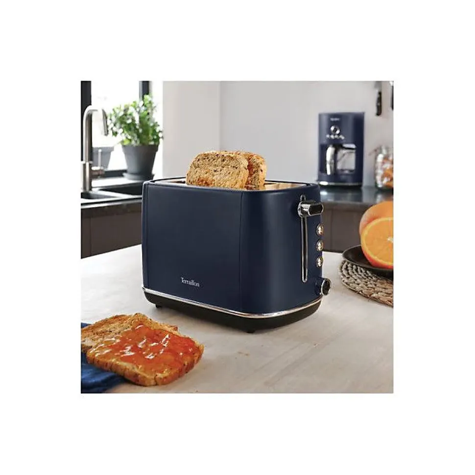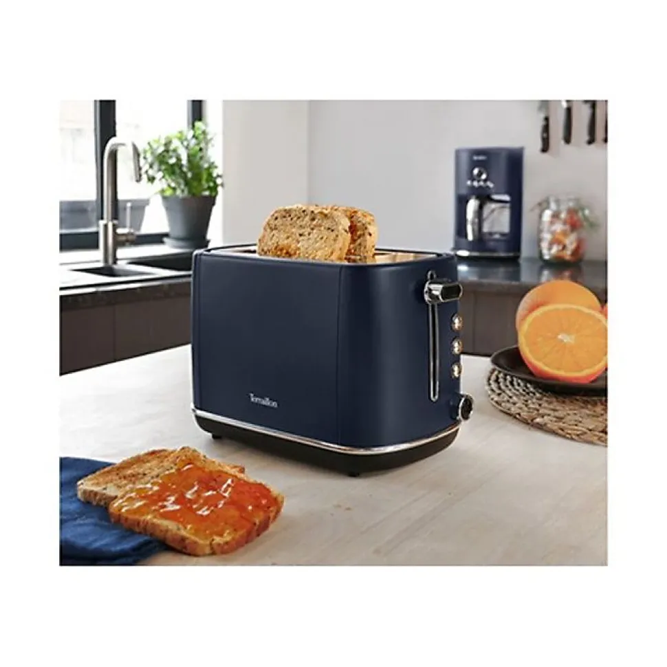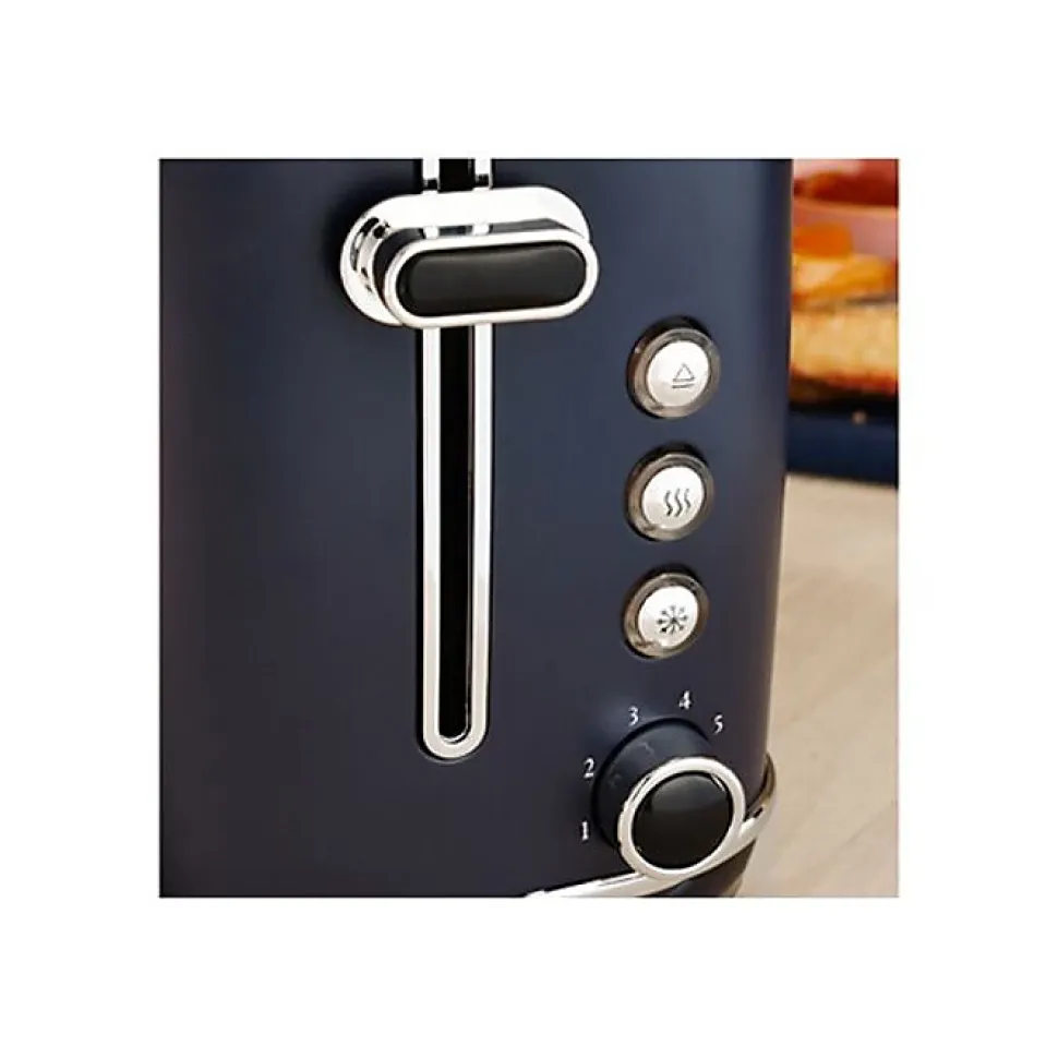 Grille-pain toaster 2 fentes – New Moon – Incontournable du petit déjeuner pour des toasts parfaits chaque jour ! Avec ses 6 niveaux de dorage réglables, il permet de personnaliser la cuisson. Fonction réchauffage, décongélation et annulation. Tiroir ramasse-miettes amovible pour un nettoyage pratique. Puissance 1050 W. Design bleu nuit moderne et élégant.