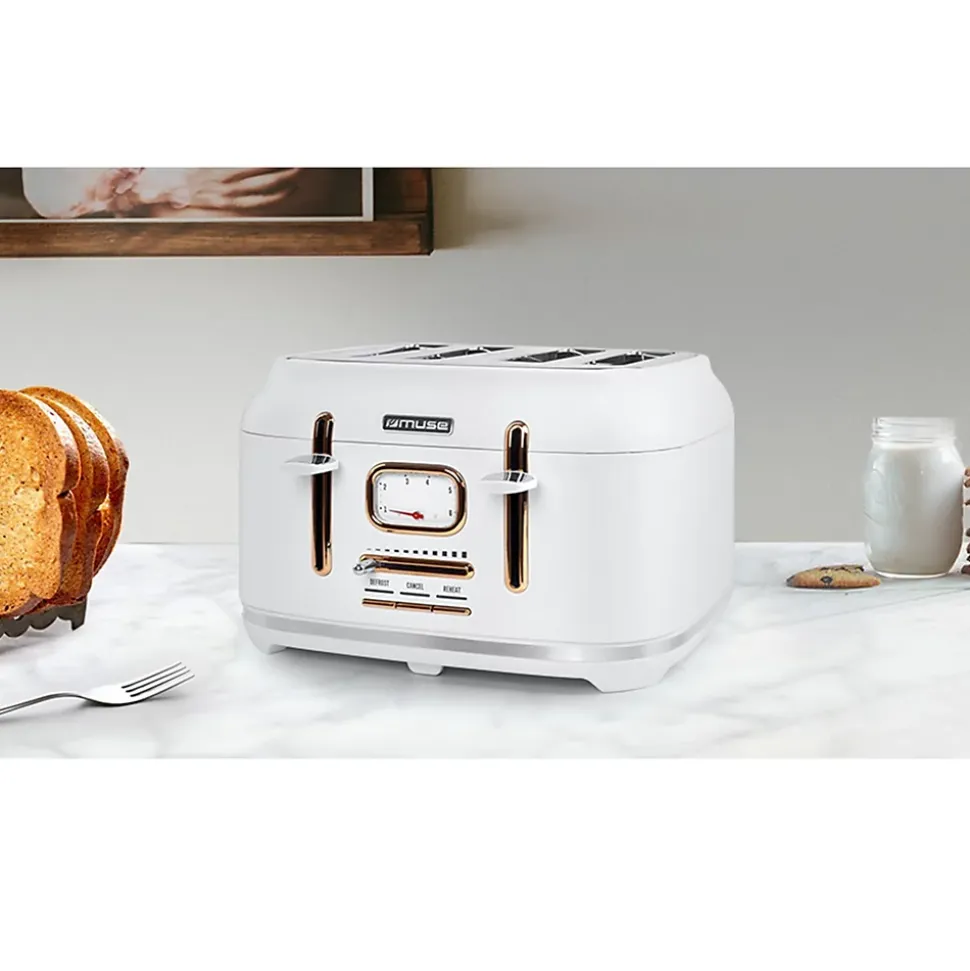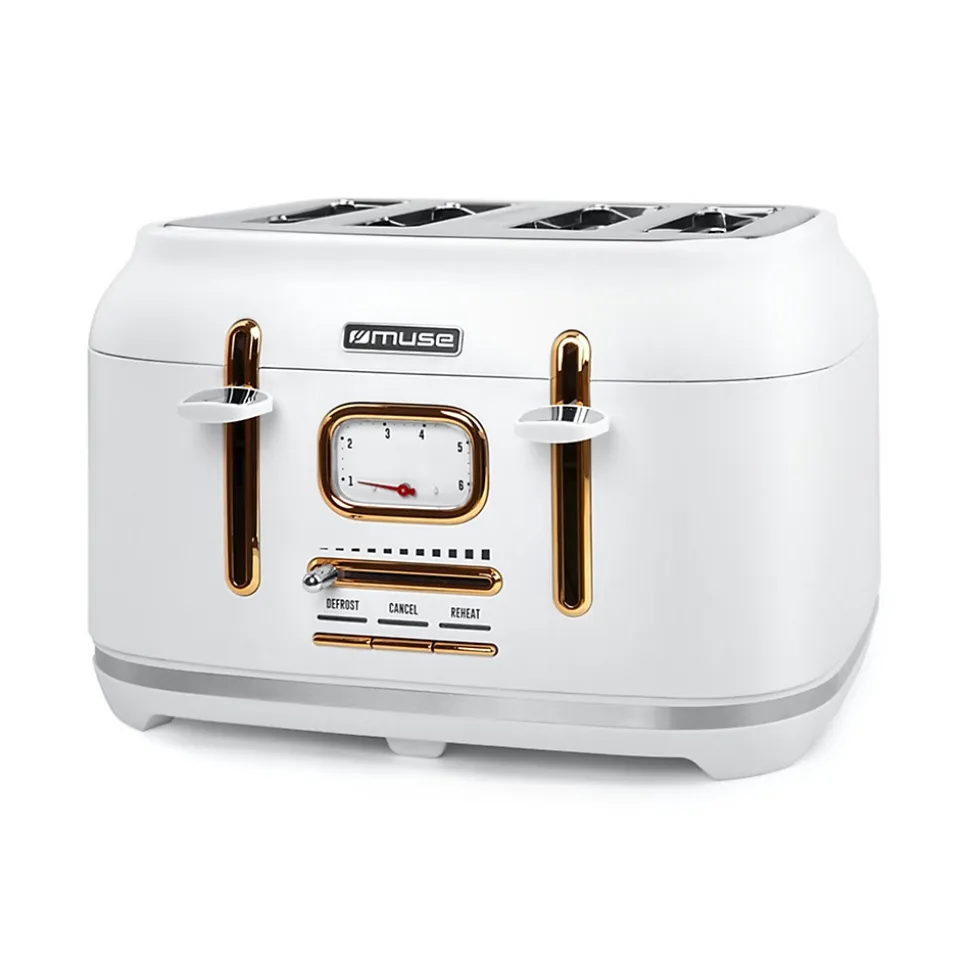 Grille-pain Muse MS-131W – 4 fentes – décongélation et réchauffage, Tiroir ramasse-miettes amovible, 1800W – Acier inoxydable et galvanisé, vous serez séduit par ses fonctionnalités et son look Rétro/DesignCARACTÉRISTIQUES :- 4 fentes- Tiroir ramasse-miettes amovible pour un nettoyage facile- Acier inoxydable et galvaniséFONCTIONS :- 6 niveaux de brunissement- Arrêt automatique- Touche de remontée- Interrupteur lumineux- Enrouleur de cordon- Surélévation pour un retrait des petites tranches en toute sécurité- Contrôle du brunissement avec fonctions d’annulation, décongélation et réchauffage- Cuisson double facePUISSANCE :- 1800WALIMENTATION :- 220-240V, 50/60HzPRODUIT :- 195 mm (H) x 300 mm (P) x 296 mm (L)- Poids net: 2.34 kg…