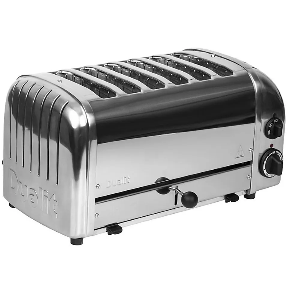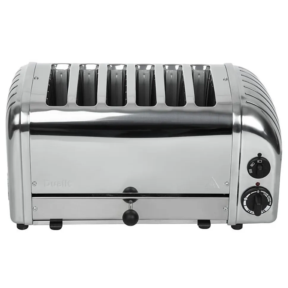 Grille-pain 6 tranches inox Dimensions: 210(h) x 460(l) x 220(p)mmRendement: 195 tranches/hPuissance: 3kW, 12.5AAlimentation: 230VPoids: 5,1 kgPrise: ouiEléments de chauffe Pro-Heat faciles à changer.Levier d’éjection à pousser vers le bas.Dimensions des fentes : 135(H)x 28(L)x 135(P)mmTiroir ramasse-miettes amovible facile à nettoyer.Référence soumise à une Eco-participation DEEE de 0,24€ par unité vendue