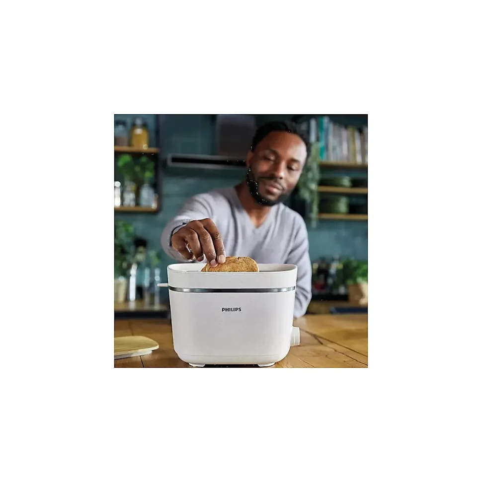 Alliez performance et responsabilité avec le grille-pain Philips Eco Conscious Edition 5000. Fabriqué à 100% en plastique biobasé et économe en énergie, il propose 2 fentes extra larges, 8 niveaux de brunissage, centrage automatique du pain et accessoire pour viennoiseries – résultat uniforme et croustillant. Ramasse-miettes amovible et bouton d’arrêt pour un nettoyage simple et une utilisation sécurisée.