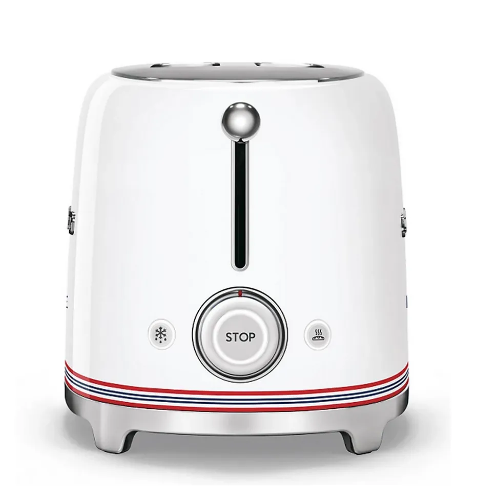 Grille-pains 2 fentes 950w Smeg – Grille-pains Années 50 TSF01IDFEU de Smeg.6 niveaux de brunissement différents pour de meilleurs résultats , fonction de décongélation , fonction de réchauffage , fonction bagel pour griller un seul côté de la tranche.L’éjection automatique des tranches à la fin du cycle de brunissement garantit un maximum de commodité.Le nettoyage de l’intérieur du grille-pain est facilité par le tiroir ramasse-miettes.Larges fentes avec centrage automatique, pour des tranches de différentes épaisseurs. – Type de produit : Grille-pains.Esthétique : Années 50.Finition : Brillant.Nombre de fentes : 2.Nombre de commandes : 1.Nombre de tranches : 2.Nombre de tiroirs ramasse-miettes : 1.Nombre de niveaux de brunissement : 6.Largeur des fentes : 36 mm.Type de prise : (F,E) Schuko.Puissance : 950 W.Tension : 220-240 V.Fréquence : 50 / 60 Hz.Longueur du câble d’alimentation : 1 m.Power off activation time : 0 min.Product off power : 0 W.Collaborations : Ines de la Fressange x Smeg.Couleur de la base : Chromé brillant.Couleur du top : Chromé brillant.Matériau du corps : Inox.Matériau de la base : Plastique.Matériau du top : Inox.Fonction réchauffage : Oui.Fonction décongélation : Oui.Fonction bagel : Oui.Activation du cycle : Levier de contrôle.Activation des fonctions : Touches rétro-éclairées.Réglage du niveau de brunissement : Manette rétro-éclairée.Éjection automatique en fin de cycle : Oui.Signal sonore fin de cuisson : No.Tiroir ramasse-miettes : Oui.Matériau du tiroir : Inox brillant.Base antidérapante : Oui.Range-cordon intégré : Oui.Type de commandes : Levier, Touches, Manette.Matériau du levier : Inox.Matériau de la manette : Plastique.Matériau des touches : Plastique.Afficher les informations en mode veille : Oui.Show information
