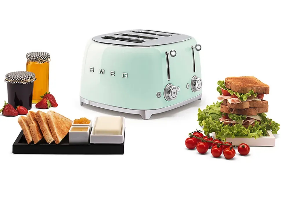 Le grille-pain SMEG TSF03PGEU allie un design rétro élégant vert pastel avec des performances de pointe pour toaster rapidement et uniformément 4 tranches. Il offre 6 niveaux de brunissage, une fonction bagel, décongélation, réchauffage, et des commandes indépendantes. Robuste et esthétique, parfait pour toute cuisine.