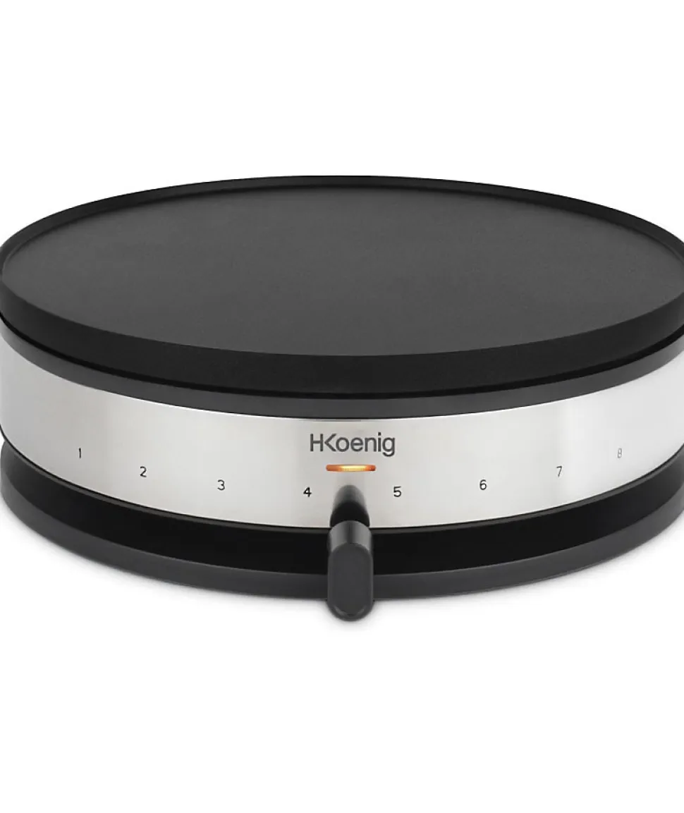 La crepiere HKoeNIG – KREP56 est un appareil polyvalent qui vous permet de réaliser de délicieuses crepes traditionnelles ou des pancakes. Sa plaque réversible amovible vous offre deux possibilités de tailles de crepes. Avec une puissance de 1500 W et un thermostat réglable jusqu’a 230 °C, vos crepes sont pretes en quelques minutes.