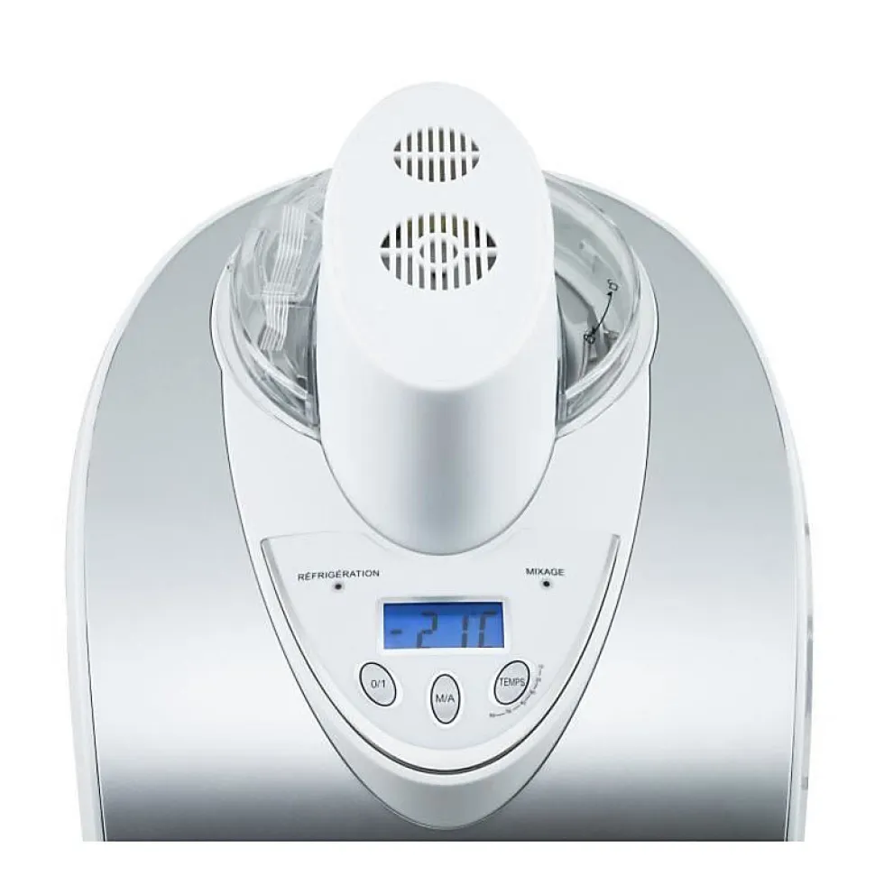 La turbine à glace H.Koenig HF180 est un appareil performant et convivial, doté d’un groupe froid intégré permettant de réaliser des glaces et sorbets en moins de 40 minutes. Son écran LCD et ses touches sensitives facilitent son utilisation, tandis que la fonction arrêt automatique et maintien au froid garantit une préparation optimale sans surveillance. Accessoires inclus pour un service pratique. Idéale pour les familles et amateurs de desserts glacés.