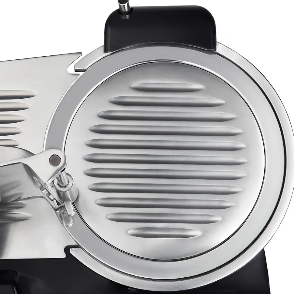 DESCRIPTION :Dotée d’une lame italienne de haute qualité, vous pouvez trancher tous vos aliments à la perfection grâce à son diamètre de 250 mm.Réglez la découpe (de 0 à 12 mm) pour adapter la trancheuse à vos besoins : chiffonnade de bœuf, tranche de pain, fruits, fromage…Puissante, rapide et silencieuse grâce à son moteur asynchrone de 240 watts et 282 tr/min.Pratique avec son aiguiseur de lame intégré pour un résultat optimal de coupe et son large plateau pour faciliter le positionnement d’un gros jambon.Ses 4 pieds antidérapants suppriment les risques de chute ou d’instabilité.Son design noir s’intégrera parfaitement dans votre cuisine.La trancheuse à viande MSX252 : pour une découpe précise !CARACTÉRISTIQUES :Trancheuse professionnelle en métalDiamètre de la lame italienne : 250 mmMoteur Asynchrone : 282 rpmEpaisseur de coupe : 0 à 12 mmAiguiseur de lame intégréBras articulé en aluminiumLarge plateau pour les gros alimentsPieds antidérapantsPuissance : 240 W