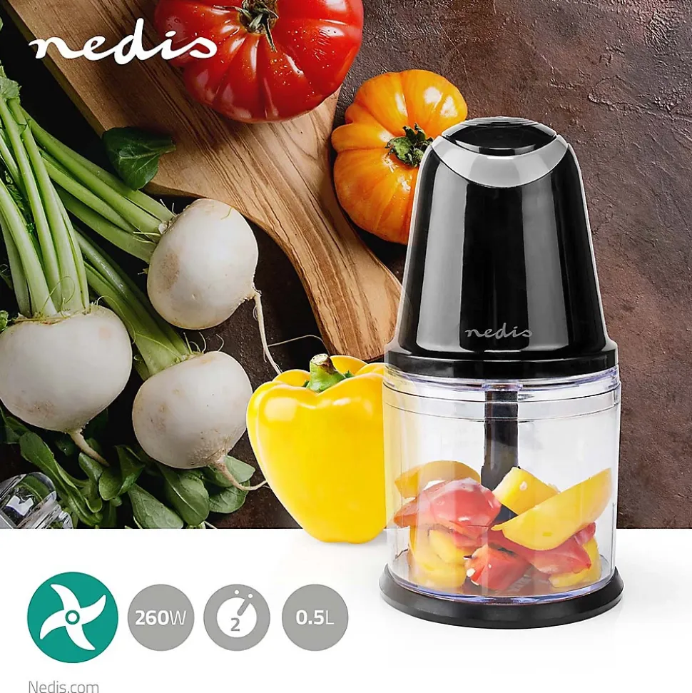Description du produit:Ce mini-hachoir deviendra l’appareil indispensable dans votre cuisine pour hacher et trancher vos ingrédients. Il permet de couper et de hacher facilement à votre place, que vous prépariez des plats à base de noix, de fruits ou de légumes. Le hachoir de 260 W avec lames en acier inoxydable est doté d’un bouton situé sur le dessus pour une utilisation pratique. Le bol en plastique avec couvercle présente une capacité de 500 mL. Une fois le hachage terminé, le nettoyage est extrêmement facile, car toutes les pièces amovibles passent au lave-vaisselle.Caractéristiques: Mini-hachoir de 260 W avec bouton de commande instantané sur le dessus Hachez noix fruits et légumes en quelques secondes Commande à 2 vitesses Fourni avec un bol en plastique de 500 mL avec couvercle Deux lames en acier inoxydable Couvercle supplémentaire entre l’unité moteur et le bol pour encore plus de stabilité. Facile à nettoyer grâce aux pièces qui passent au lave-vaisselle Pieds antidérapantsContenu de l’emballage: Mini-Hachoir Manuel