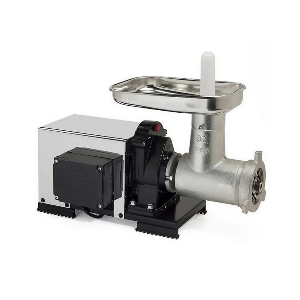 Hachoir à viande 1200w Reber – Hachoir à viande 9504 NSPI de Reber avec moteur électrique à induction. Plaque et couteaux auto aiguisage en acier. Ventilateur de refroidissement. Boitier interrupteur. Condensateur étanche. Corps et vis sans fin en acier étampé. – Type de produit : Hache viande.Capacité : 100 à 160kg/h.Puissance : 1200W.Corps : Acier étampé.Moteur : Electrique à induction.Condensateur étanche.Livré avec une grille de 6.Dimensions (L x l x h) : 56.5x23x36.5 cm.Poids : 18,6 kg.
