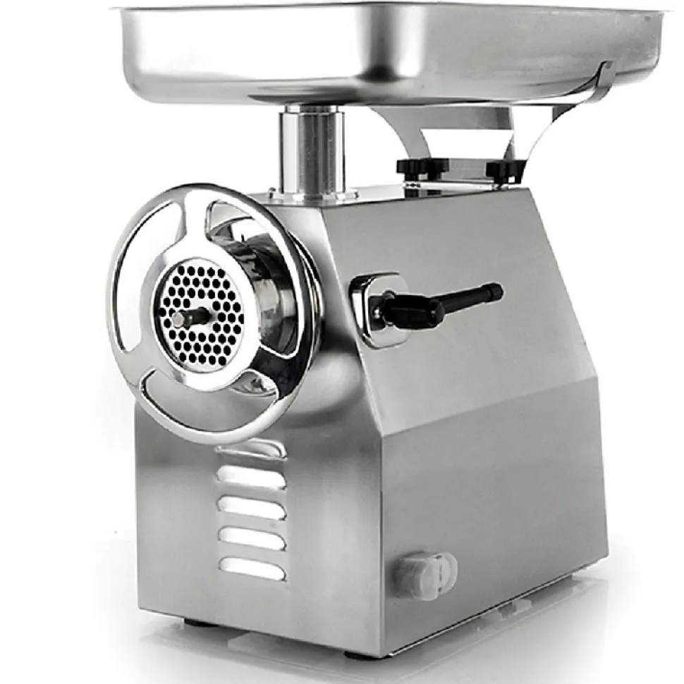 Ce hachoir à viande électrique professionnel convient pour les boucheries, les supermarchés, les restaurants, les collectivités . Cet appareil a sa structure en inox ainsi que l’entonnoir et le bac collecteur. Il est doté d’un réducteur immergé d’huile hermétique à l’huile, mais aussi la protection thermique du moteur asynchrone ventilé incluse. Parfait pour les boucheries, les supermarchés, les restaurants, les collectivités.Ce hachoir à viande permet un rendement de 500 kg/h avec un appareil de dimensions (L x P x H) mm de 260 x 510 x 525 pour un poids de 40 kg. Structure en acier inox AISI 304 Réducteur immergé d’huile hermétique à l’huile Protection thermique du moteur asynchrone ventilé incluse Unité d’embout d’entreprise facile à retirer en acier inox AISI 304 Plates-formes auto-affilées en acier inoxydable incluses Bac et trémie en acier inoxydable Pilote ABS Le système de commande central nécessite une tension basse de 24 volts Protection marche / arrêt avec cache en caoutchouc étanche Entonnoir et bac collecteur en acier inoxydable Contrôles de 24 volts Diamètre grille : ø 98 mm RPM : 140 Disque standard: ø 6 mmCapacité-débit : 500 kg/h Puissance absorbée (kw) : 1,6/2,2 HP Ali