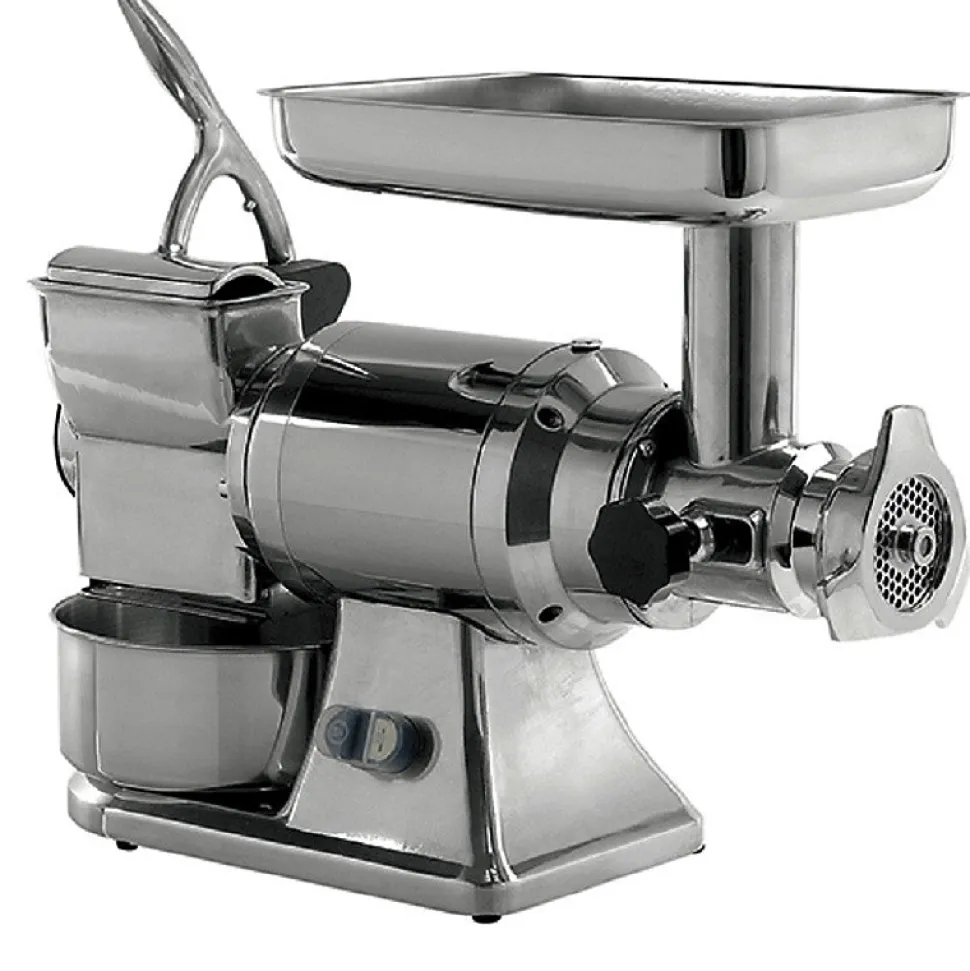 Cette râpe professionnelle fonctionne pour tout type de fromage à pâte dure, pain, noix, biscuits. La bouche de ce hachoir électrique a un ø de 70 mm pour une production de 200 kg/h de viande ou 50 kg/h de fromage.Hachoir à viande avec structure en aluminium poli Récipient à viande en acier inoxydable Rouleaux en aluminium adaptés au contact alimentaire Appareillage à basse tension Hachoir à viande professionnel mais aussi rape à fromage professionnelle, est doté d’une structure en aluminium poli avec un récipient à viande en acier inoxydable. Couteau auto formé et plaque perforée en acier inoxydable Moteur ventilé Bouton de verrouillage équipé d’un bouton Râpe professionnelle pour tout type de fromage à pâte dure, pain, noix, biscuits Puisard en acier inoxydableCapacité bouche hachoir : ø 70 mm Capacité bouche râpe à fromage : 140-80 mm RPM fromage : 1400 RPM viande : 200Capacité de Production : viande: 200 kg/h, fromage : 50 kg/h Puissance absorbée ( kw) : 0,750 Alimentation : 230/1F+N/50 Hz Dimensions (L x P x H) mm : 200 x 550 x 460 Poids : 22 kg</span