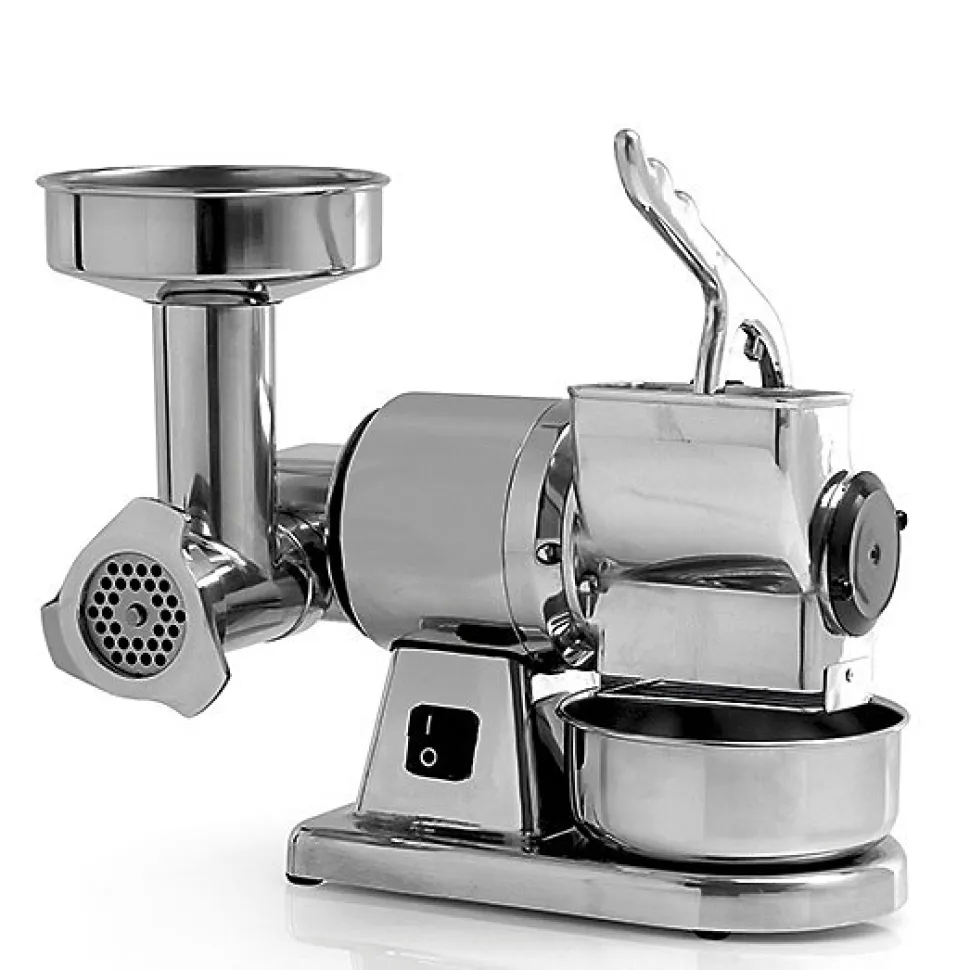 Cet Appareil est pourvu d’un plateau et trémie en acier inoxydable ainsi qu’une grille de sécurité de protection en acier inoxydable placée au bas de la bouche de la grille. Unité de hachage « ENTERPRISE » facile à démonter disponible en : Acier inoxydable AISI 304 Capacité : 15 Kg/h viande & 30 Kg/h fromageTaille: L260 P380 H360 Tiroirs auto-affûtants en acier inoxydable inclus Chargement des dimensions d’entrée de viande : 120 x 52 mm Dimensions de la bouche de sortie du hachoir: Ø 60 mm Dimensions de la bouche de la râpe à fromage: 100-65 mm Plateau et trémie en acier inoxydable Caillebotis en acier inoxydable plaqué avec nickel sans électricité Sécurité Grille de protection en acier inoxydable placée au bas de la bouche de la grille Micro interrupteur de sécurité placé sur l’entrée de la bouche. Pilon ABS – Contrôles 24 volts Le modèle est recommandé pour les petites entreprises RPM fromage : 1400 RPM hachoir : 200