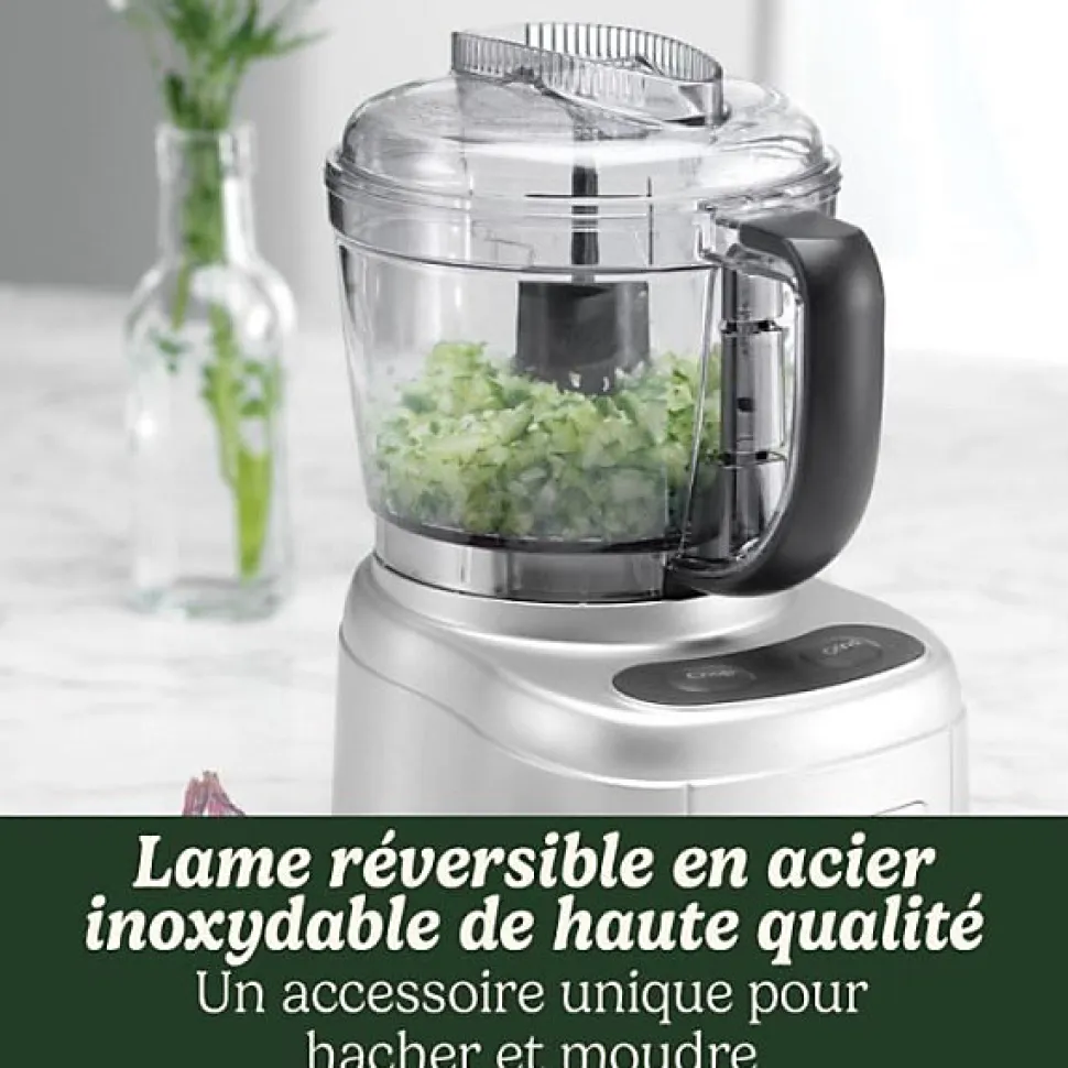 Le Hachoir électrique CUISINART ECH4E Mini Prep Pro combine puissance et compacité. Avec sa lame réversible et son bol de 900 ml, il hache, broie, mixe et mélange facilement. Son mode Pulse permet un contrôle précis pour des textures parfaites. Facile a nettoyer au lave-vaisselle, il est idéal pour sauces, condiments et épices.
