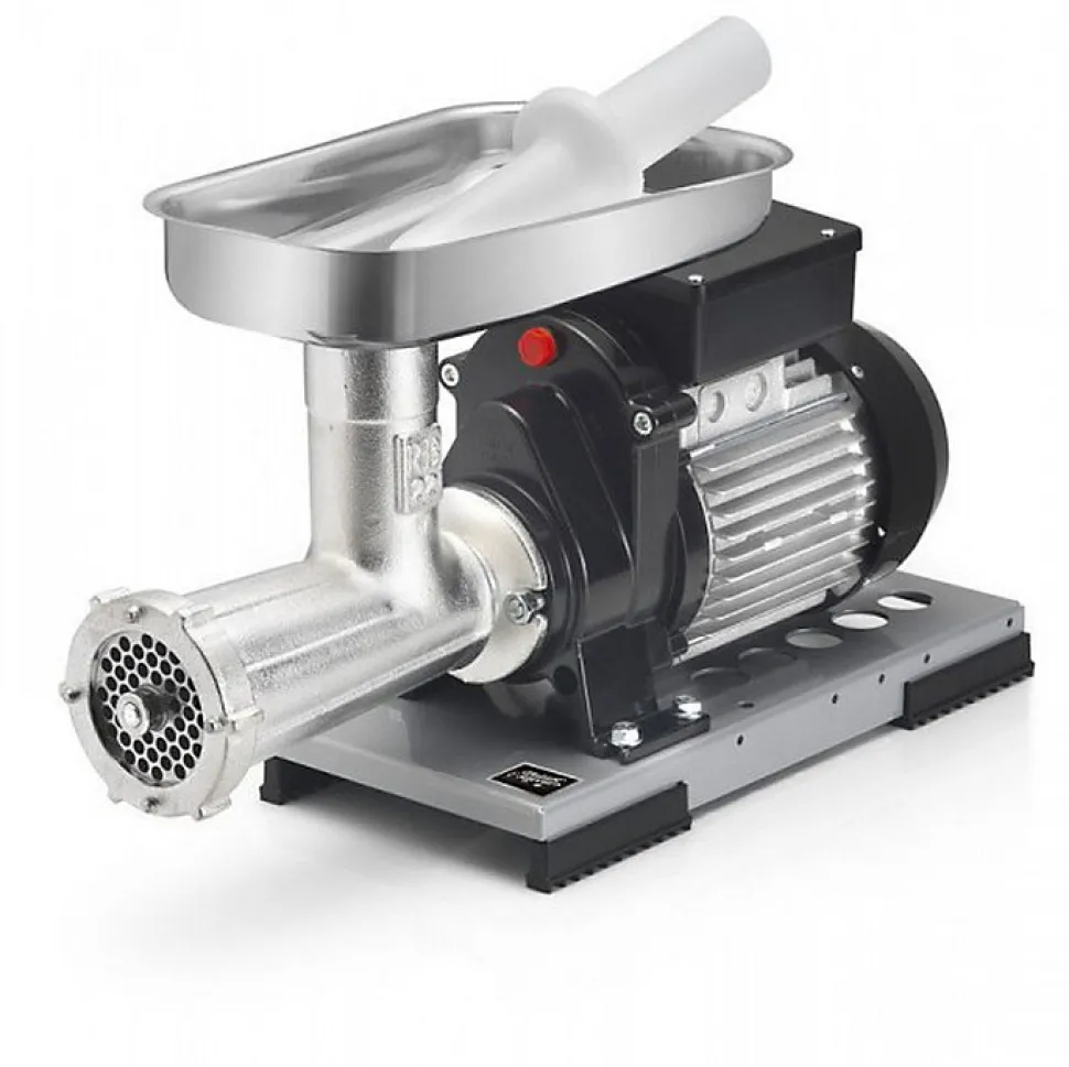 Hachoir à viande électrique N°22 – Capacité 80 à 120 kg de viande /heure – Fourni avec une grille diamètre 8 mm, plateau inox et pilon – Moteur monophasé à induction et service continu – Puissance 600 W – Garantie 2 ans – Fabriqué en Italie.